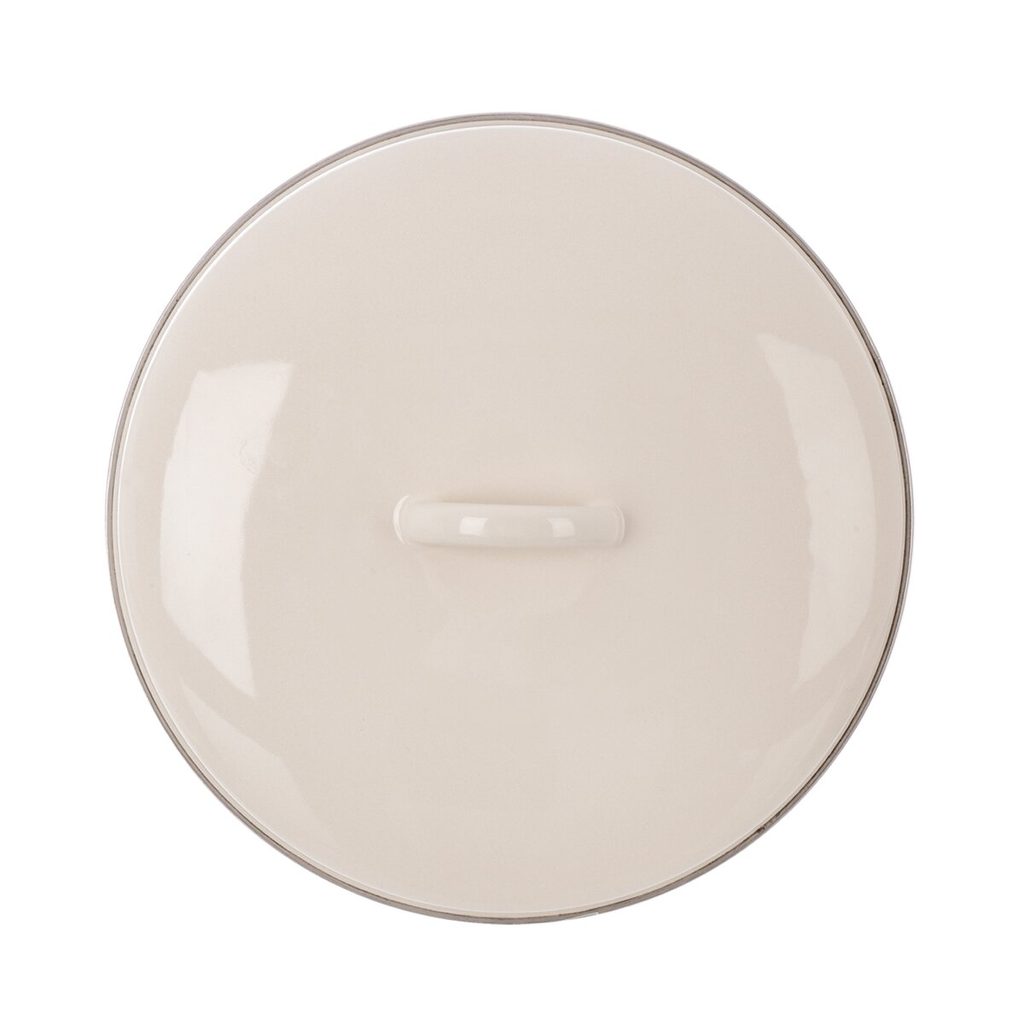 Poklice smaltovaná s nerezovým lemem. Využijete ji jak na kastroly, tak na hrnce (např. na hrnec 113351). Materiál: smaltovaný plech, nerezová ocel. Rozměry: pr. 29 cm. Není vhodná do mikrovlnné trouby. Lze použít v myčce nádobí a troubě.