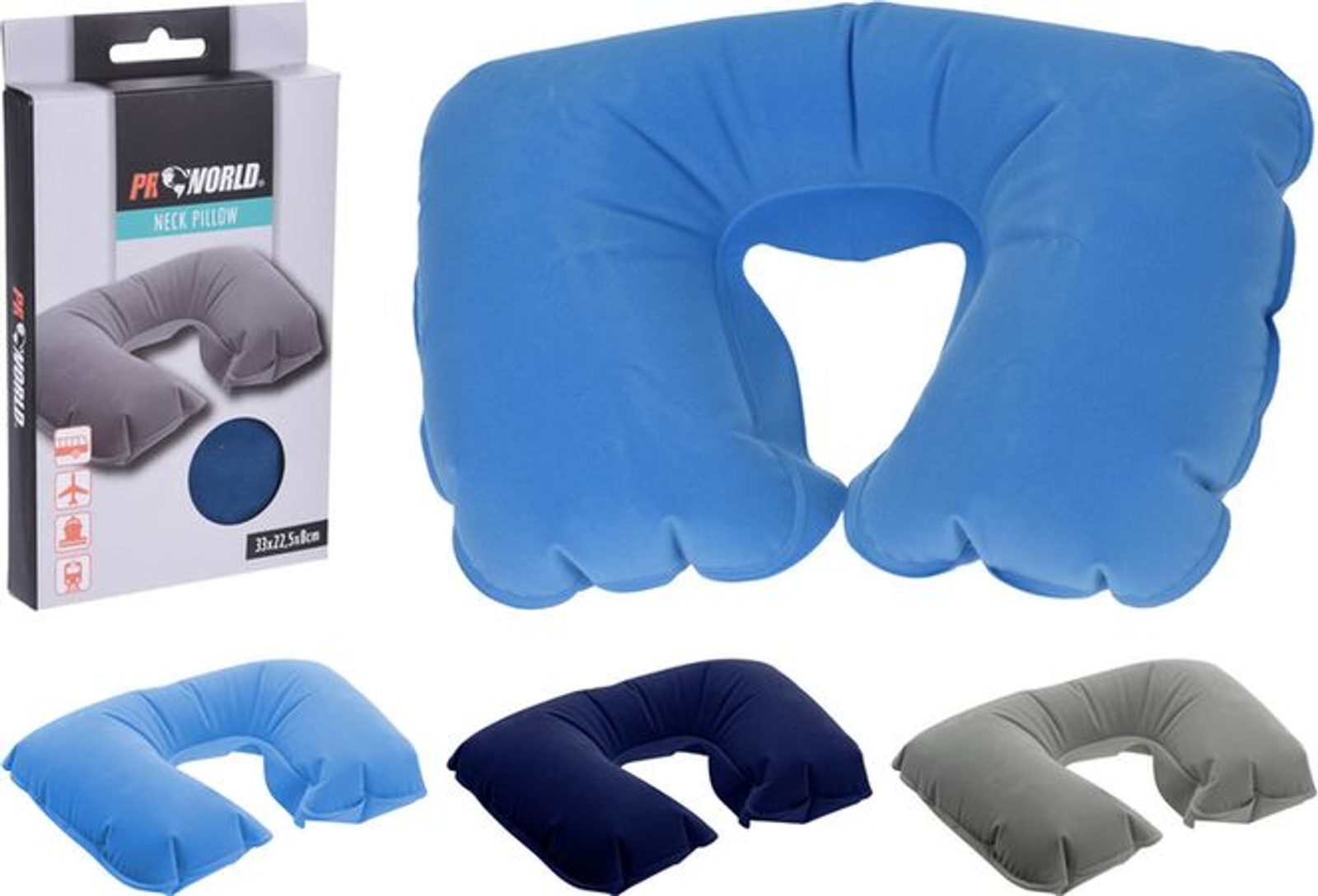 polštář 33x22,5x8cm, nafuk. na krk do letadla, mix barev