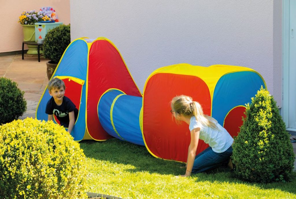 Set stanů 3 v 1 obsahuje: Krychlový stan 80x80x80 cm, POP UP stan 85x85x100 cm, tunel 46x120 cm.