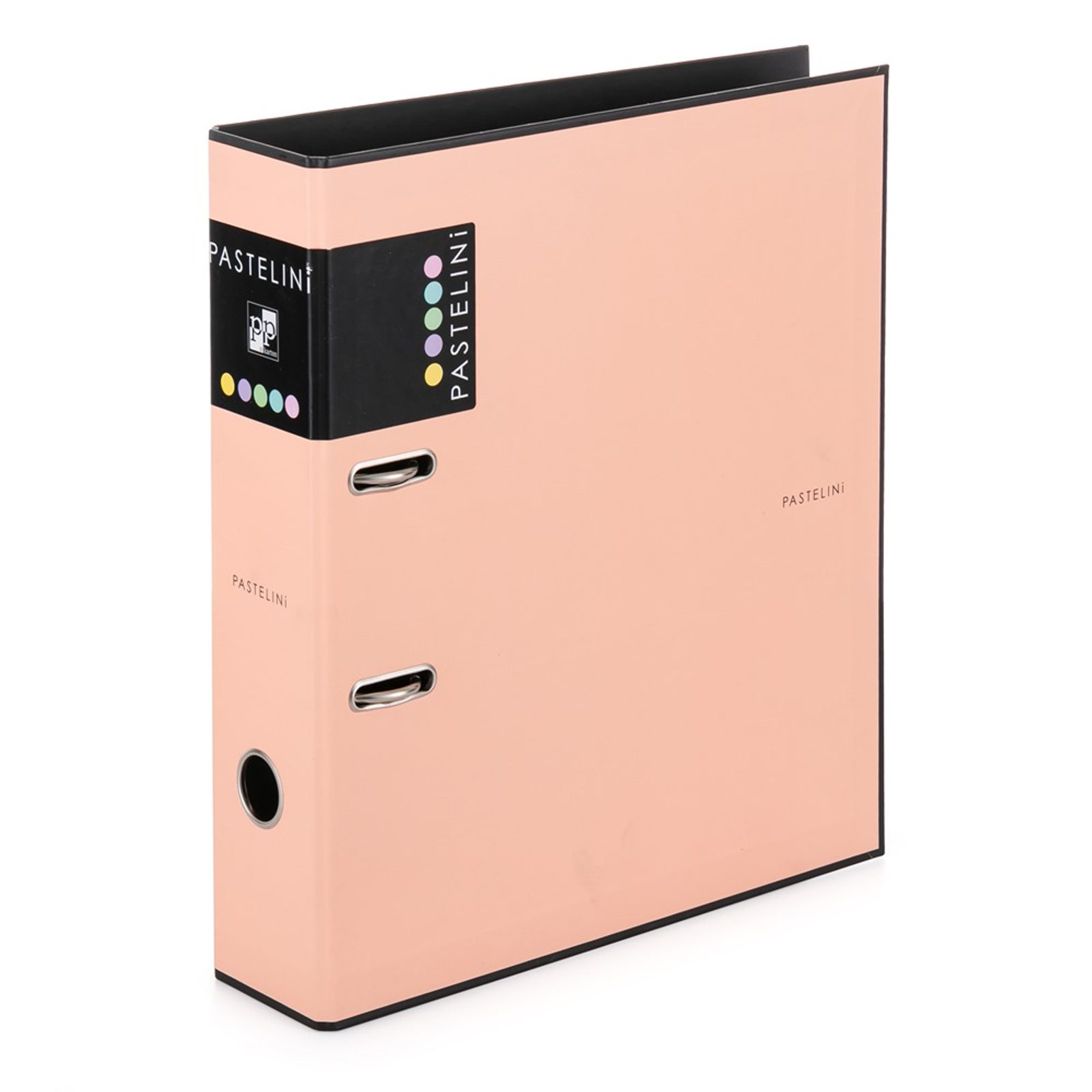 Pořadač v moderních pastelových barvách s pákovou mechanikou na zakládání dokumentů ve formátu A4, prsto a rado kroužek. Šířka hřbetu 7 cm, kapacita 650 listů.