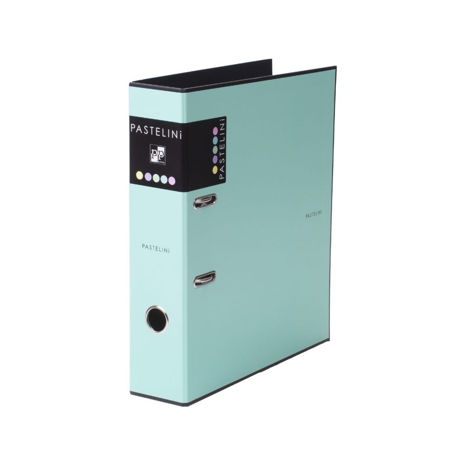 Pořadač v moderních pastelových barvách, s pákovou mechanikou, na zakládání dokumentů ve formátu A4, prsto a rado kroužek.