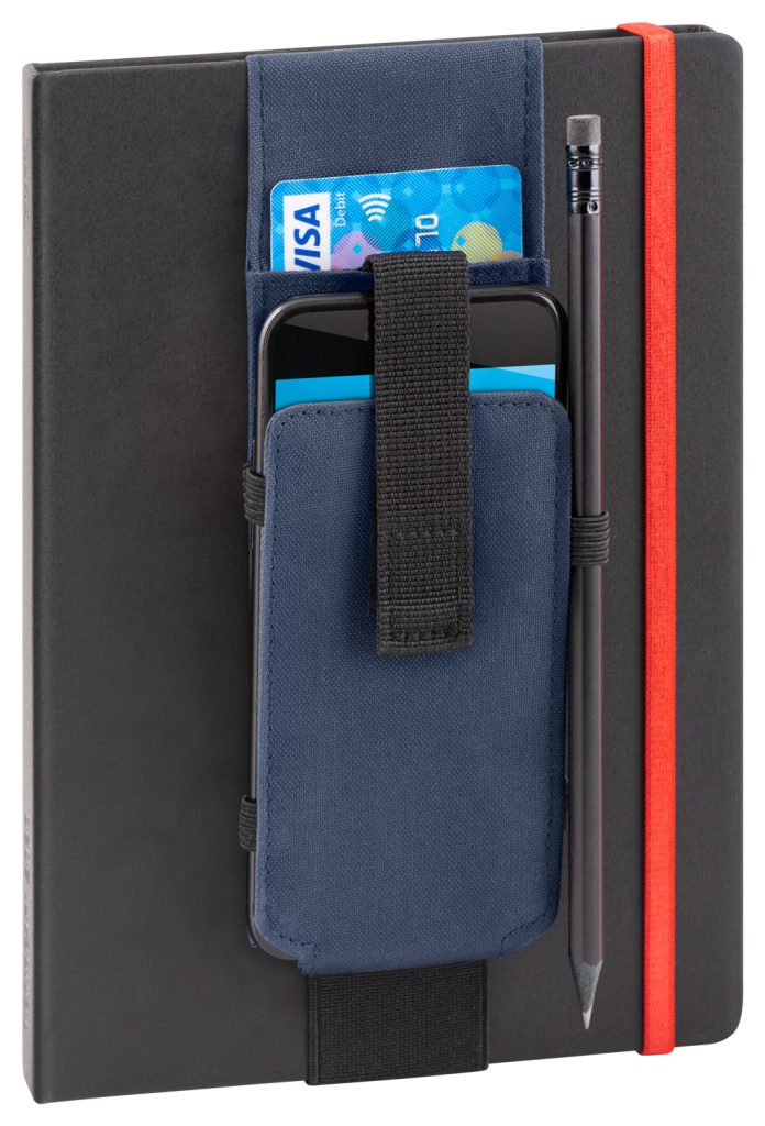 Praktický návlek na diář, který má prostor na dvě kreditní karty, mobilní telefon a uchýt na pero.