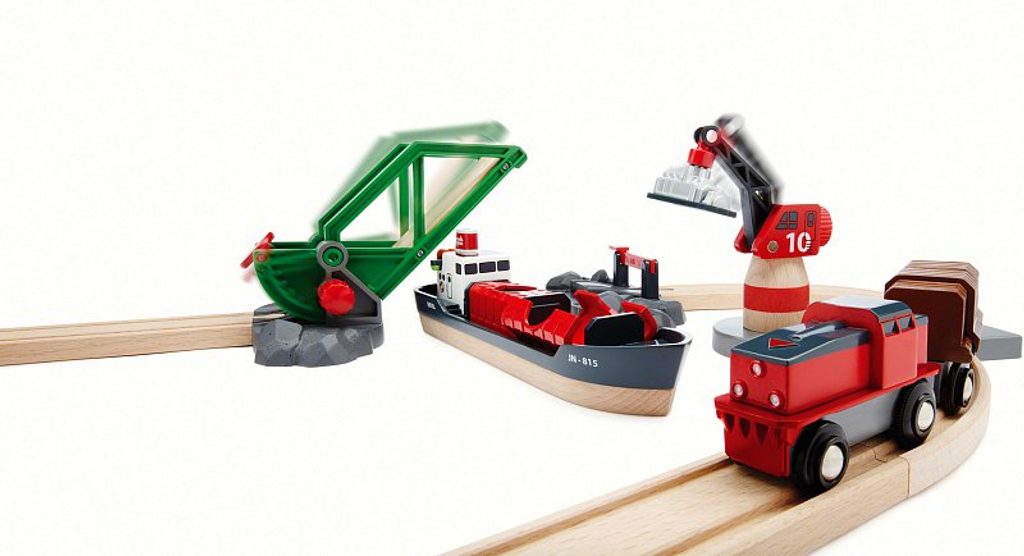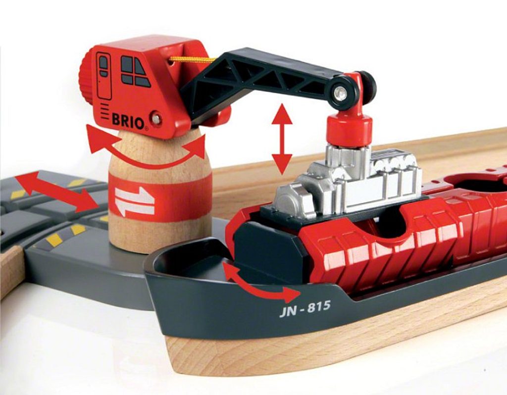 Krásná vláčkodráha Brio Přístaviště s nákladní lodí, kolejemi a lokomotivou okouzlí každého chlapce. Když loď vplouvá do přístavu, je třeba zvednout most a pomocí jeřábu přeložit náklad na vláček. S touto detailně zpracovanou sadou si Vaše dítě užije spoustu zábavy. Tato souprava je kompatibilní s ostatními dřevěnými vláčkodráhami Brio.