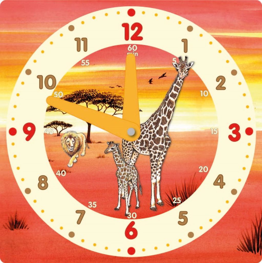 12ti hodinový čas+ minuty, materiál pevný karton s lesklou povrchovou úpravou, barevné ručičky, nýty vkládány strojově-nelze ručně rozpojit,