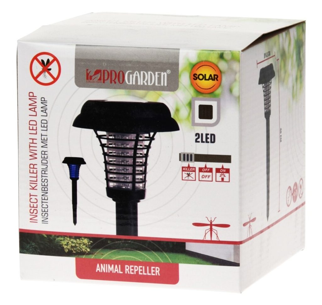 PROGARDEN Lapač hmyzu UV solární lampa 2v1 40 cm KO-DX9500810 - solární lampa určená k osvětlení a hubení létajícího hmyzu- funguje také jako zahradní osvětlení- lze libovolně přepínat mezi funkcemi lapače hmyzu a obyčejným svícením- napájení integrovanou solární baterií- UV zářivka přitahuje hmyz v rozsahu 360ti stupňů až na 30m2 daleko- elektrický výboj účinně hubí nejen komáry, ale veškerý poletující hmyz- ekologický provoz bez kouře, jedů a chemických prostředků- vhodná k umístění do země i k zavěšení- nenahraditelná pomůcka na zahradu, ke grilu, na chatu, terasu či balkóny- snadné a bezpečné použití- jednoduché čištění- napájení: 220/240V- rozměry lampy: 14,5 x výška 40,5 cm