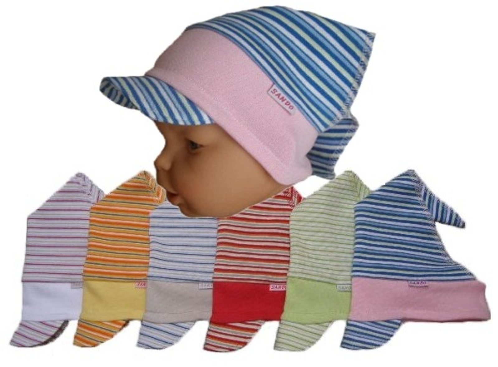 Krásná a oblíbená čepička ve tvaru šátku, nyní varianta pruhovaná s kšiltem.