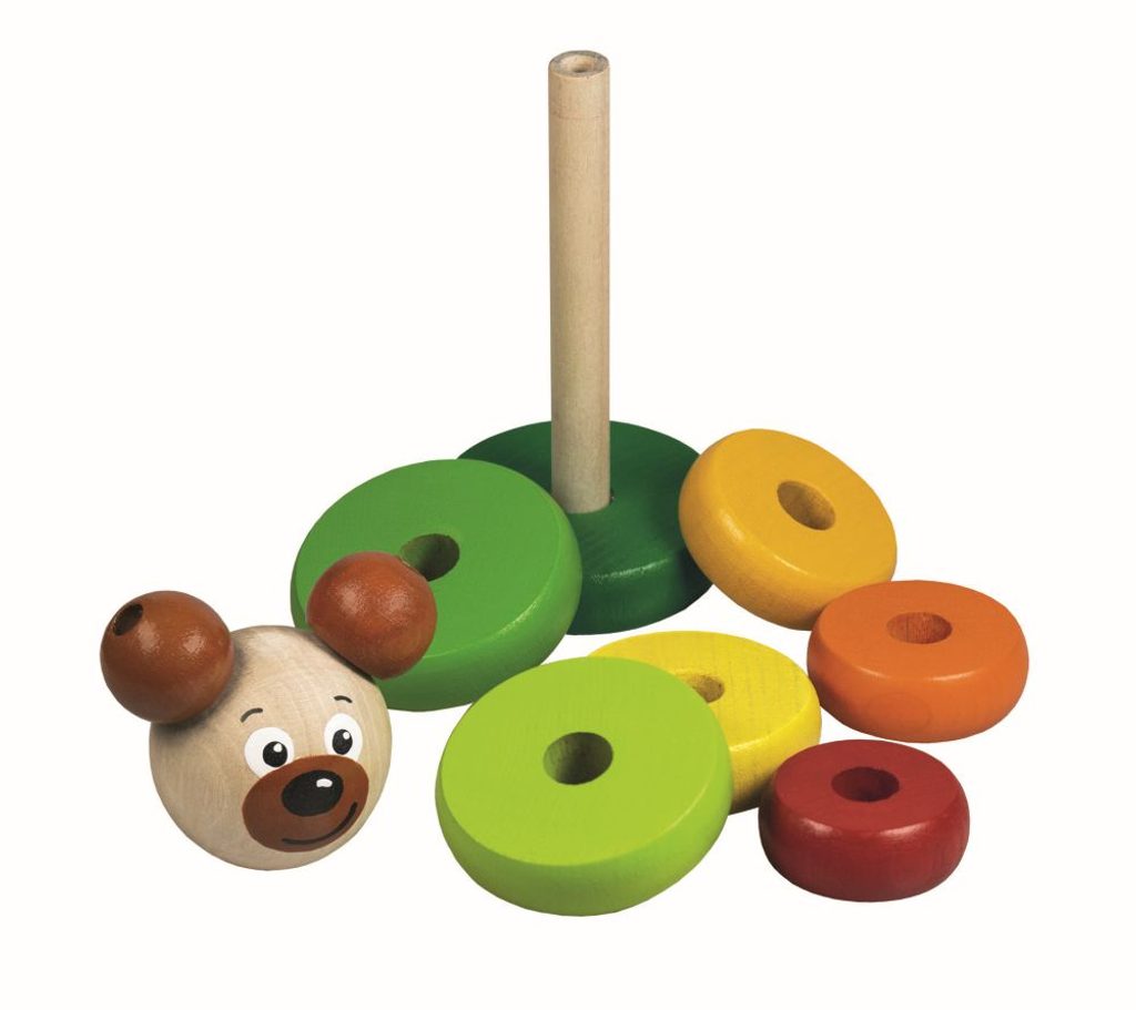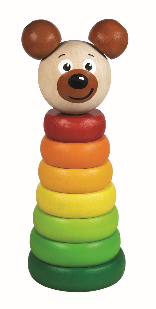 Dřevěná skládací pyramida s motivem méďi, rozvijí představivost, logické myšlení a motorické schopnosti dítěte.