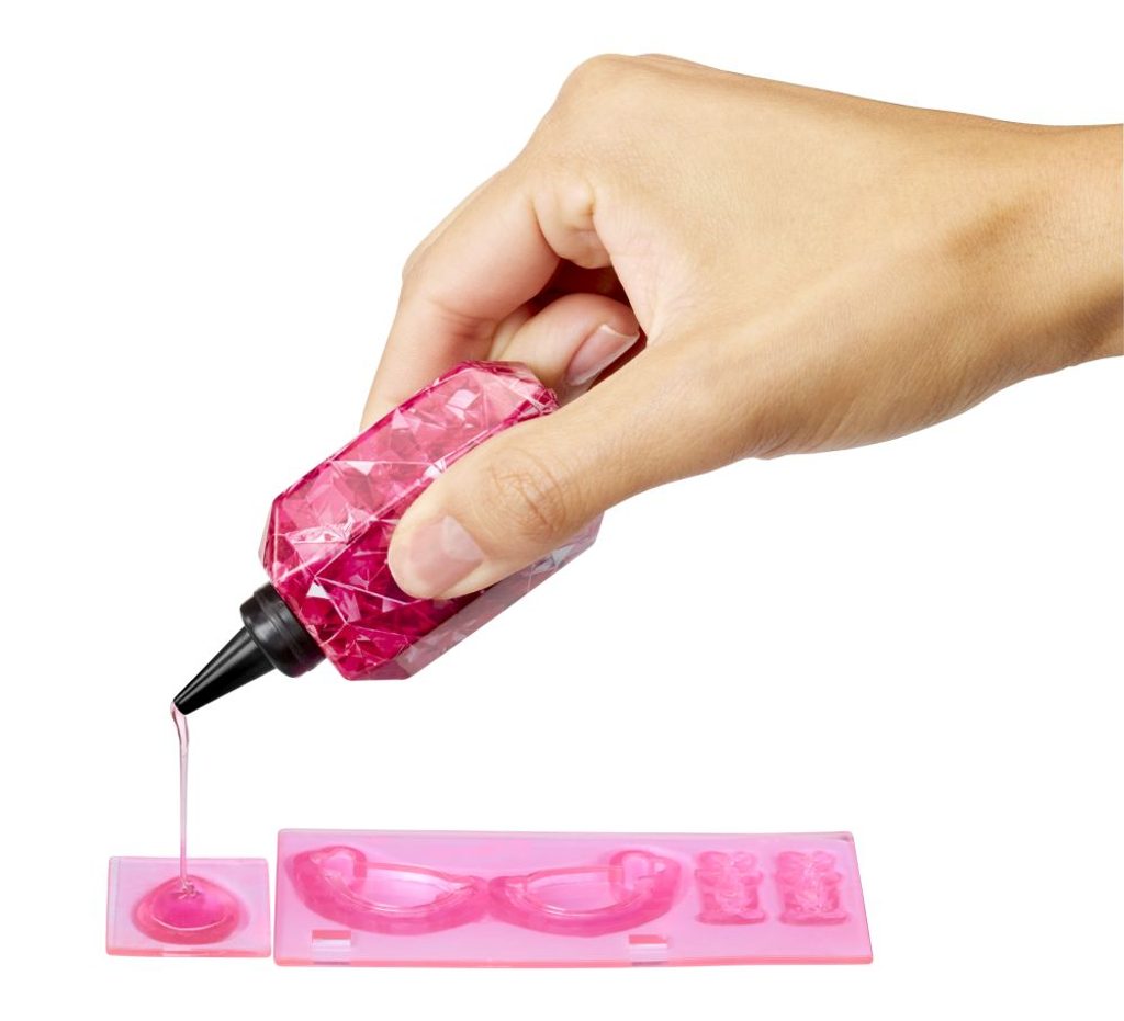 Set na výrobu doplňků imitujících krystaly Tato panenka je pro všechny, kteří chtějí kombinovat kreativitu s nejnovějšími trendy v módě. Vytvoř více než 5 krystalových doplňků pro svoji panenku pomocí pryskyřice a formiček, které jsou součástí balení. Pro sebe můžeš vyrobit prsten. V sérii můžeš sesbírat 4 oblíbené a 1 úplně novou panenku.