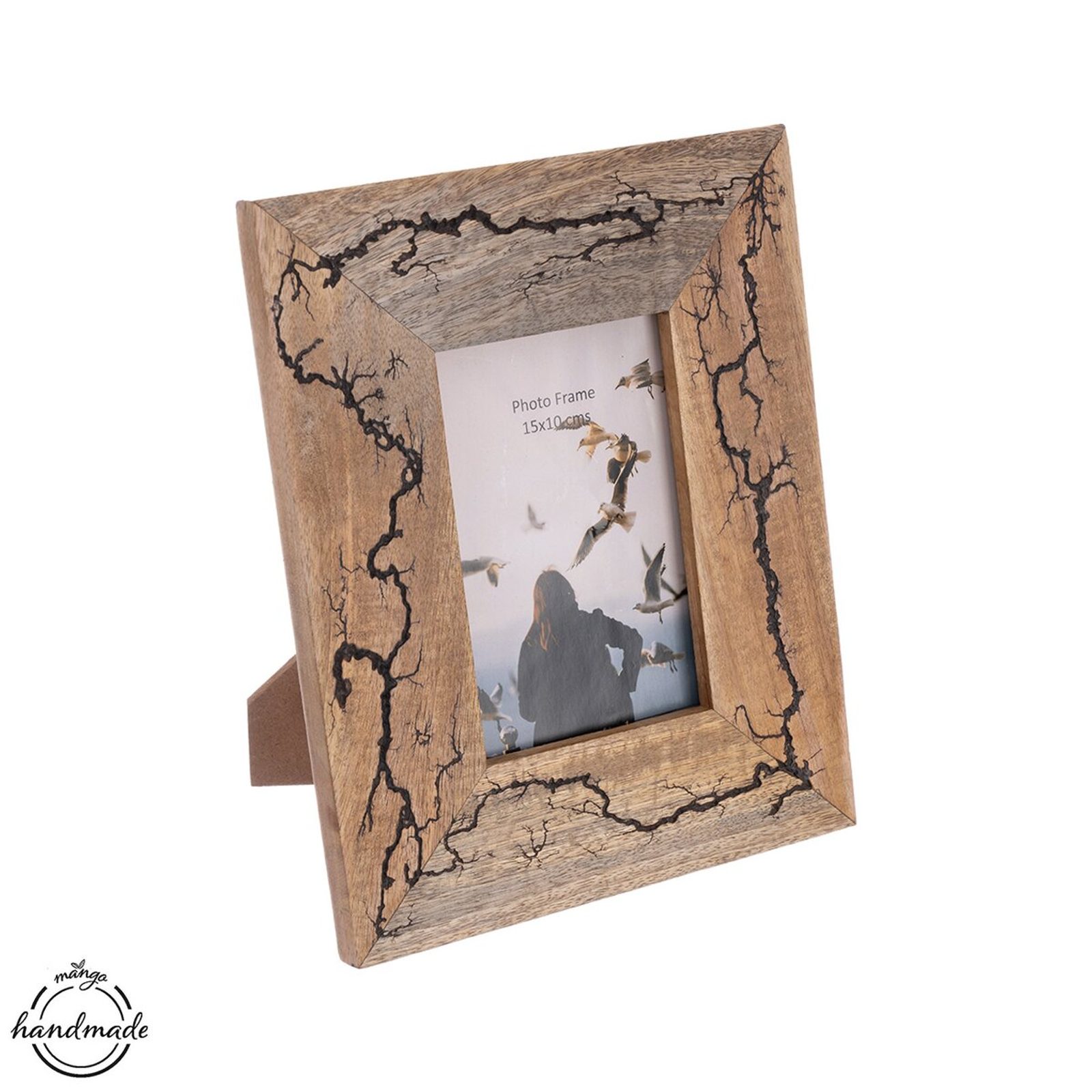 Rámeček na vaší oblíbenou fotku z kolekce MANGO electric oživí vaši domácnost a dodá interiéru originální šmrnc. Jedná se o designový, ale zároveň praktický kousek. Každý kus je výsledkem ruční výroby, a proto se může mírně lišit, což z něj činí jedinečný a osobitý doplněk. Rámeček je vhodný pro fotografie o rozměru 10×15 cm. Ze zadní strany je vybaven stojánkem s možností postavení na šířku i na výšku. Materiál: mangové dřevo. Rozměry: cca 20,5x25,5x2 cm.