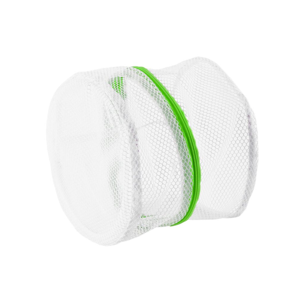 Pouzdro na praní podprsenky a jiného jemného prádla, které si zaslouží tu nejlepší péči. Nemusíte ho ale prát v ruce, při praní v pračce ho ochrání jemná síťka. Pouzdro je opatřeno zipem s plastovým jezdcem - nepoškodí prádlo. Materiál: plast PP (kroužky konstrukce), polyester (síťka + zip). Univerzální velikost. Rozměry: pr. 15 cm, v. 18 cm.