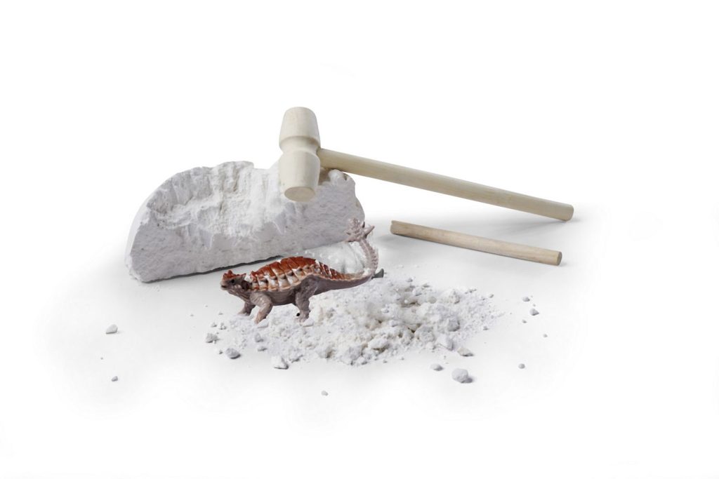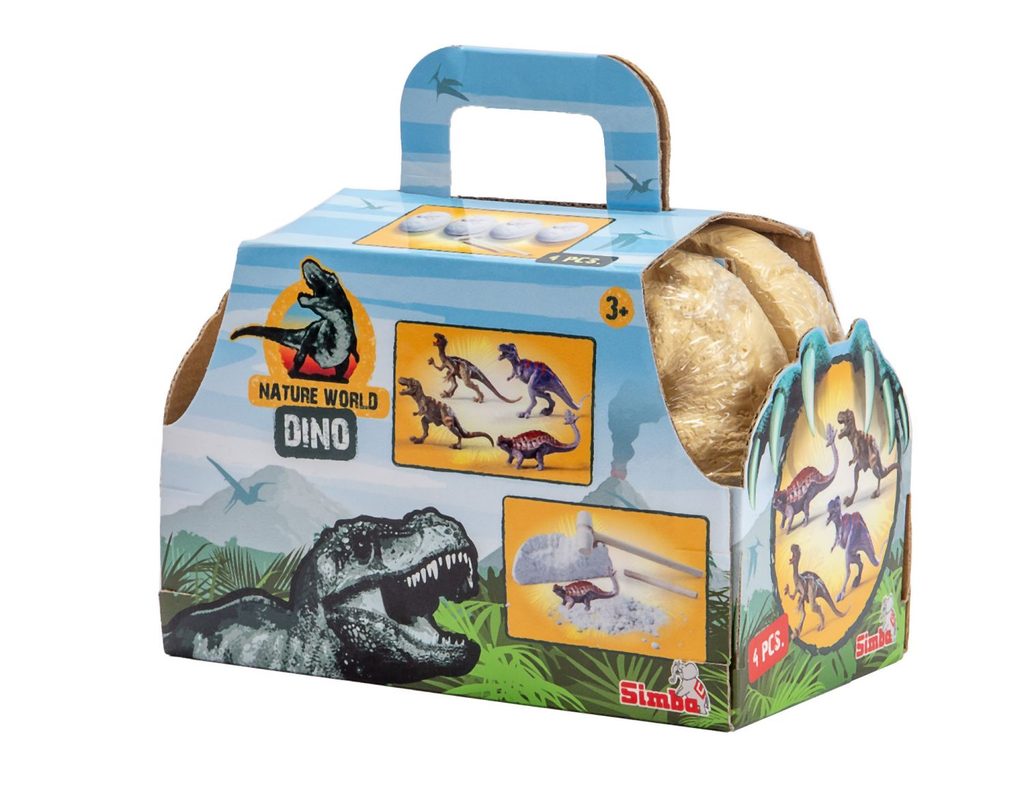 Sada na vykopání figurky dinosaura ukrytého ve vajíčku o velikosti 10 cm. 4 druhy dinosaurů o velikosti 8-9 cm. Součástí je nářadí na vykopávání.