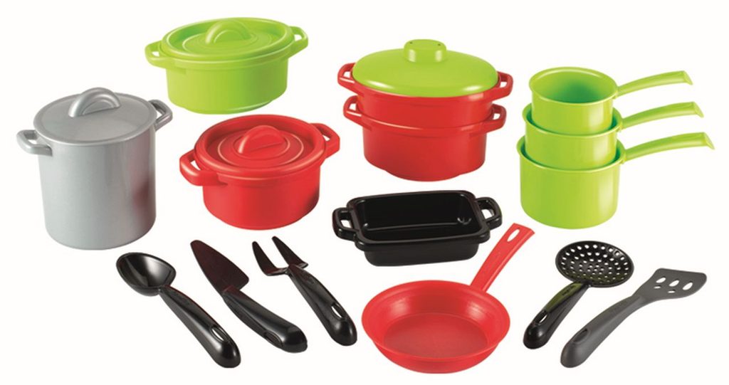 Sada nádobí na vaření obsahuje hrnce s pokličkami, rendlíky, zapékací nádobu, pánvičku a kuchyňské náčiní.