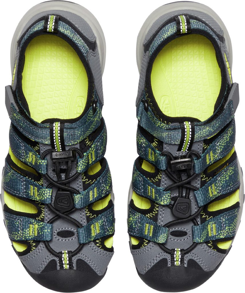 Model dětského lehkého sportovního sandálu, který je určen pro volnočasové aktivity a objevování nových dobrodružství. Svršek boty je vyroben z rychleschnoucí prodyšné polyesterové páskoviny. Díky použitým materiálům se dá bota využít i při vodních aktivitách. Upevnění na noze je vyřešeno pomocí stahovací elastické gumičky pro rychlé zavázání, přidaný Velcro pásek pak umožňuje dokonale stáhnout botu k dětské noze. EVA mezipodešev je zpevněná stabilizačním prvkem ESS shank, dále je bota vybavena anatomickou EVA stélku pro pohodlný došlap. Uzavřená pata umožňuje pohyb i v náročnějším terénu. Samozřejmostí je patentovaná ochrana prstů KEEN.PROTECT a kvalitní gumová podešev. Boty jsou ošetřeny přírodní, antibakteriální technologií Cleansport NXT.