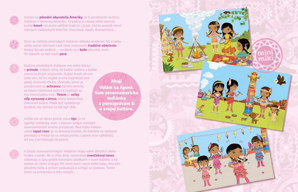 Knížky z kolekce minimiky patří dlouhodobě k našim nejprodávanějším. Představují tím úplně nejjednodušším a zároveň hravým způsobem módu a něco z kultury cizích zemí. Děti díky nim poodhalí každodenní život lidí z nejrůznějších koutů světa, jejich zvyky nebo navštíví zajímavá místa. Díky tomu získají a zpřesní si své představy o cizí zemi, jejích obyvatelích, folklóru či módě. Více než 300 překrásných barevných samolepek, atraktivní obrázky a dvojjazyčné texty učiní jejich poznávání ještě zajímavějším a komplexnějším.