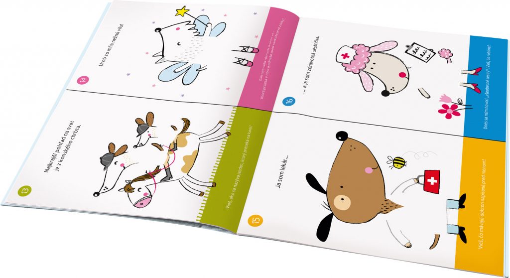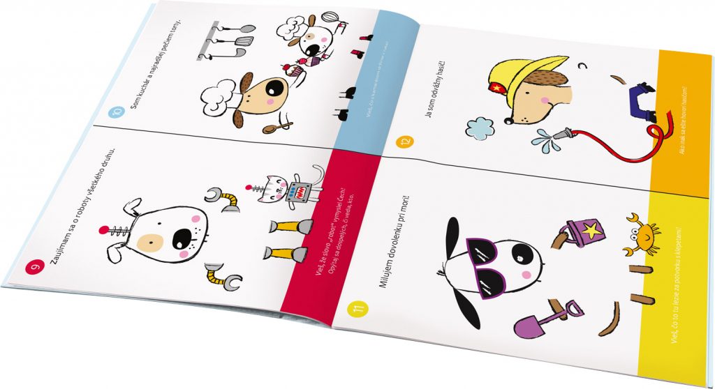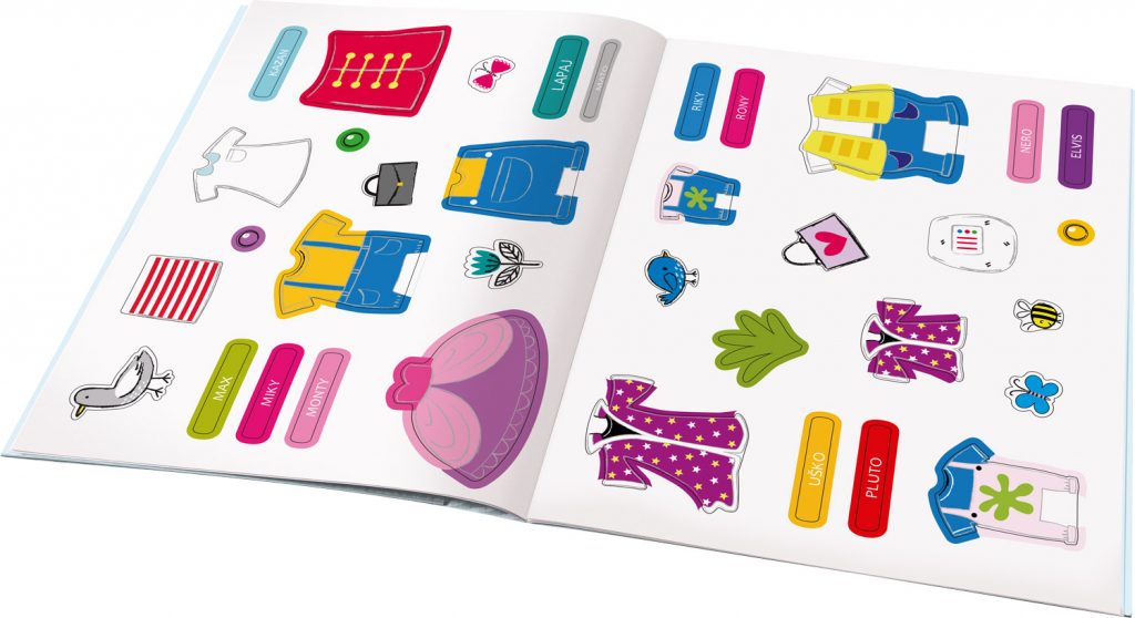 Pojmenujte roztomilé pejsky, vyberte správné samolepky a oblékněte je podle toho, co mají rádi nebo čemu se věnují. A nezapomeňte zodpovědět naše otázky! Pokud si snad nebudete vědět rady, nic se neděje: v knížce najdete i správné odpovědi. Až z vás budou psí odborníci, můžete si nakreslit vlastní zvířátko a doplnit jeho obrázek vším, co potřebuje, aby bylo mezi ostatními spokojené. Třeba i nějakou záludnou otázkou a správnou odpovědí!