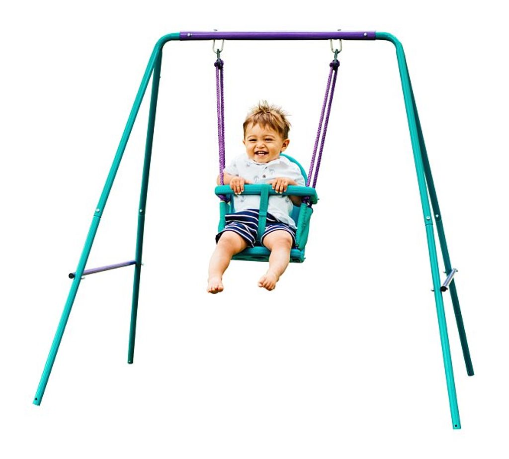 Sada kovových houpaček roste s vaším dítětem .Kovová houpačka je dodávána se dvěma křídlovými sedadly, které jsou vzájemně zaměnitelné, jak rostou děti. Dětské sedátko je vhodné pro děti starší 12 měsíců, s vysokou zadní částí a předním postrojem pro udržení malých dětí v bezpečí. Houpačka 2v1 obsahuje také jedno otočné sedátko, které používá lana a může být nastaveno podle výšky dítěte. Kovový rám houpačky je vyroben z oceli s práškovým nástřikem, je pevný a odolný a zajišťuje dlouhodobou ochranu proti korozi. Sada obsahuje kotvy pro ukotvení houpačky do země. Max. nosnost 45 kg. Vždy nutný dohled dospělé osoby. Minimální uživatelský věk 12 měsíců a max. uživatelský věk 10 let. Pouze pro venkovní použití. Pouze pro domácí použití a ukotvení do země. Sestavená velikost: L181 x W171 x H164cm. Houpačka je vhodná pro malé děti ve věku 12 měsíců a více.