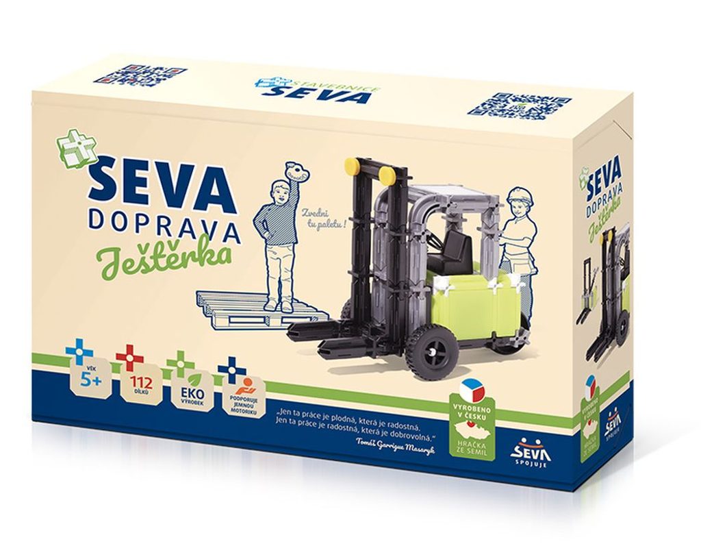 Vysokozdvižný vozík, manipulační zařízení anebo lidově Ještěrka. Ze 112 dílků, které v balení najdete si podle přiloženého návodu můžete sestavit nejen to.