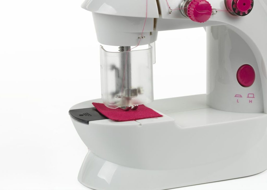 Funkční šicí stroj. Balení obsahuje: Šicí stroj, nožní pedál, 6 kovových cívek, náhradní jehlu, navlékač nití. Plastový kryt jehly, který chrání před poraněním.