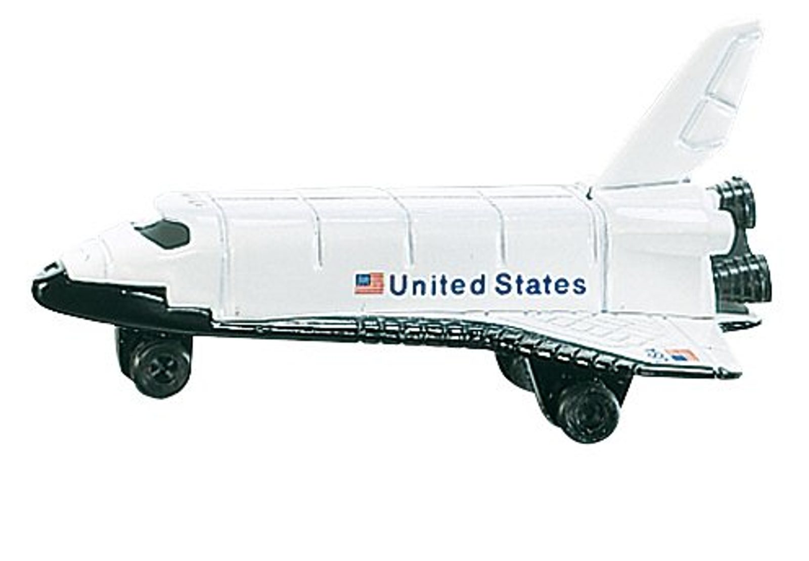 Kovový model amerického raketoplánu s plastovými doplňky.