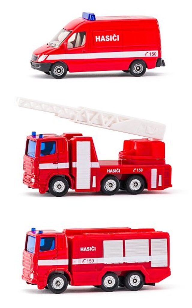 Česká verze 3 aut z hasičské série. Baleno v blistru. Sada obsahuje: 1 osobní auto, 1dodávku a 1velký požární vůz. Rozměr balení: 19,7 x 7,8 x 3,8 cm. Věk: 3+