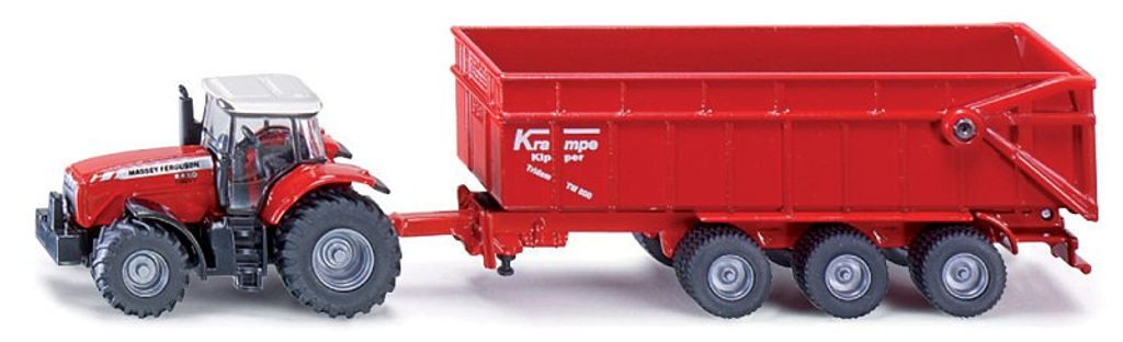 Traktor Massey Ferguson s velkým tříosým přívěsem Krampe je vyroben z kovu s plastovými doplňky. Vlek je kromě malých částí, které jsou plastové, celokovový. Celý výrobek, včetně potisků, je vypracován s důrazem na detail a bude se vyjímat v každé sbírce zemědělských strojů. Měřítko: 1:87. Rozměr: 184 x 32 x 44 mm. Rozměr balení: 22,6 x 5,4 x 7,5 cm. Věk: 3+