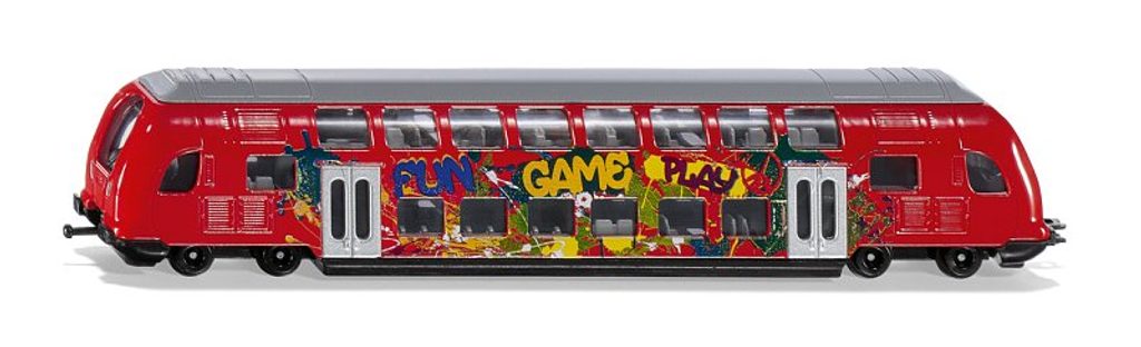 Pozor prosím! Dvoupatrový vlak SIKU se blíží k nástupišti číslo 1. Vlak je vyroben převážně z kovu a jezdí na hladce běžících kolech. Vagon je zdoben jasnými graffiti. Dvojpodlažní vlak je vybaven standardními vlakovými spojkami SIKU vpředu a vzadu, což umožňuje připojit další vagony. Nový dvoupatrový vlak rozšiřuje řadu autobusů a vlaků SIKU v sérii veřejné dopravy. Vyrobeno z kvalitního a odolného materiálu. Měřítko: 1:87. Rozměr: 209 x 27 x 40 mm. Rozměr balení: 25 x 4,2 x 7,5 cm. Věk: 3+