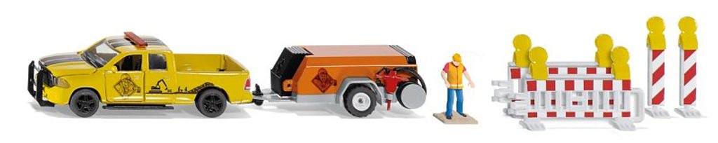 RAM 1500 je monstrum amerického pick-up světa. Osm válců a motor s velkým výkonem – díky tomu může být na staveništi použit jako traktor. Pickup má přívěs s kompresorem připojeným k jeho tažnému zařízení. Spusťte kompresor, otevřete motor kompresoru, aby se ochladil, nasaďte si helmu a sluchátka – a můžete začít! Tým staveniště je snadno viditelný i z dálky, a to díky žluto-oranžovému oděvu. Stavba je navíc chráněna bariérami a nosníky, které jsou součástí sady. Sada také obsahuje figurku dělníka. Vyrobeno z kvalitního a odolného materiálu. Věk: 3+. Rozměr: 210 x 43 x 40 mm. Rozměr balení: 34 x 11,5 x 6,5 cm.