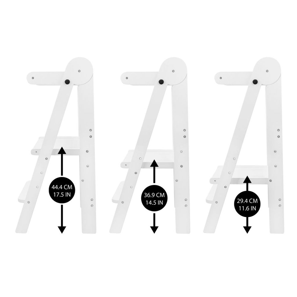 Tato vzdělávací věž LOFTY je vyrobena z vysoce kvalitní překližky a je určena pro děti ve věku 18–48 měsíců. Maximální nosnost až 50 kg. Rozměry výrobku: 47,7 (Š) x 44 (H) x 90,5 (V) cm. NASTAVENÍ VÝŠKY: Výška plošiny je možná ve 3 polohách, aby vyhovovala výšce dítěte: 29,4, 36,9, 44,4 cm (měřeno od podlahy). JEDNODUCHÉ: Dítě může na vzdělávací věž vylézt samostatně, schůdek ve výšce 16 cm od podlahy, což dítěti pomáhá bezpečně nastoupit na výrobek. VŠESTRANNÉ: Výška věže je navržena tak, aby se vešla na většinu kuchyňských desek nebo do koupelny. umyvadla. SKLADACÍ: Tato věž je skládací, snadno se přenáší z kuchyně do koupelny a šetří místo při skladování. BEZPEČNÉ: Dřevěný materiál byl testován a potvrzeno, že neobsahuje formaldehyd.