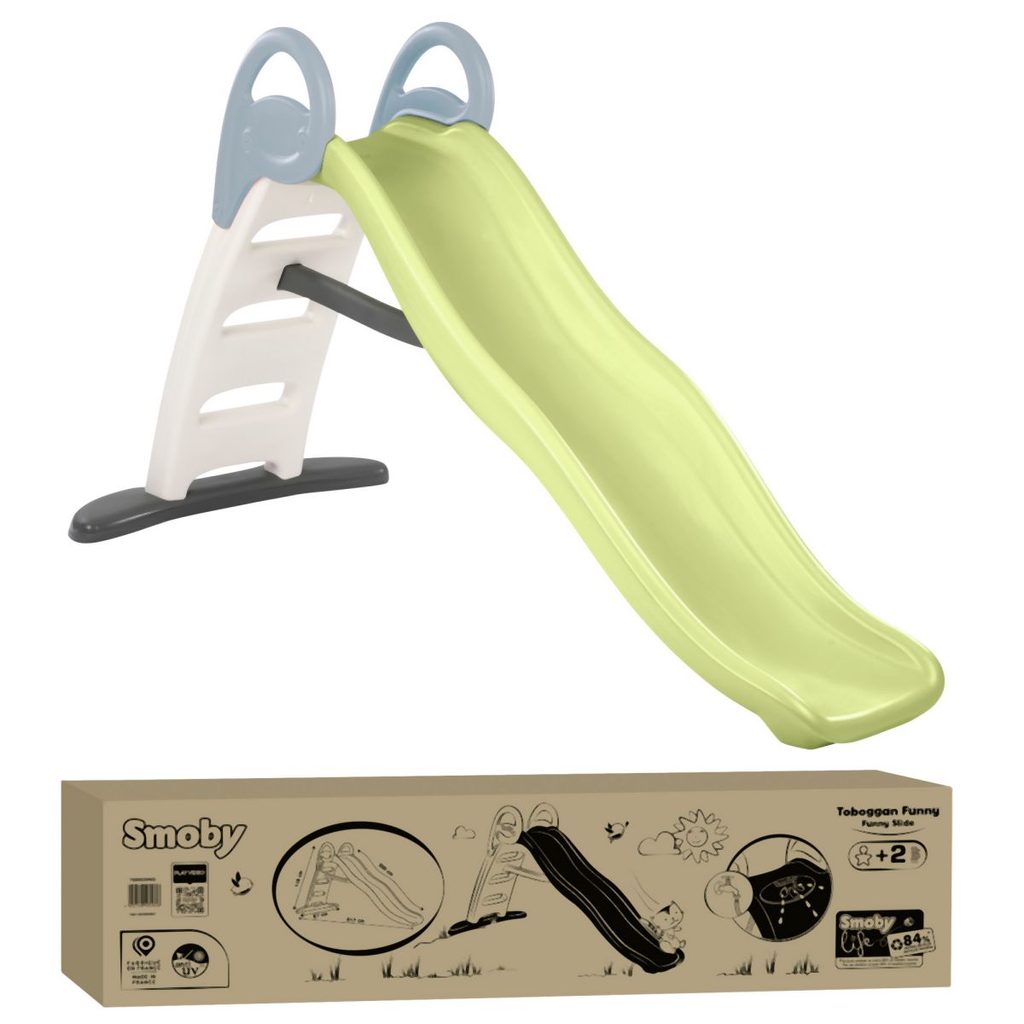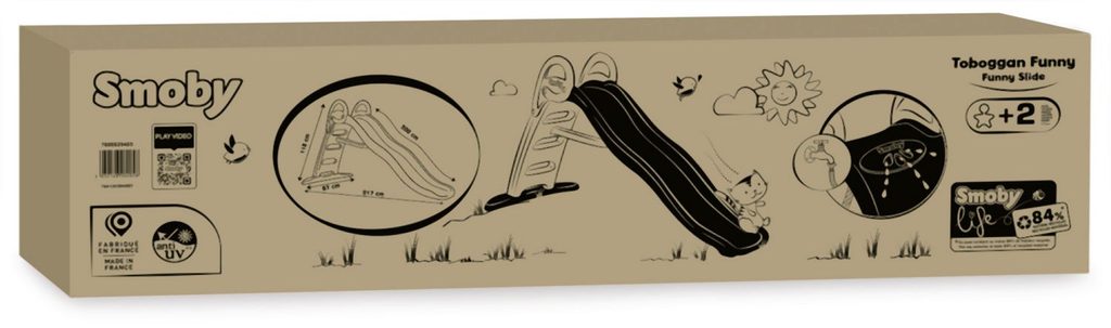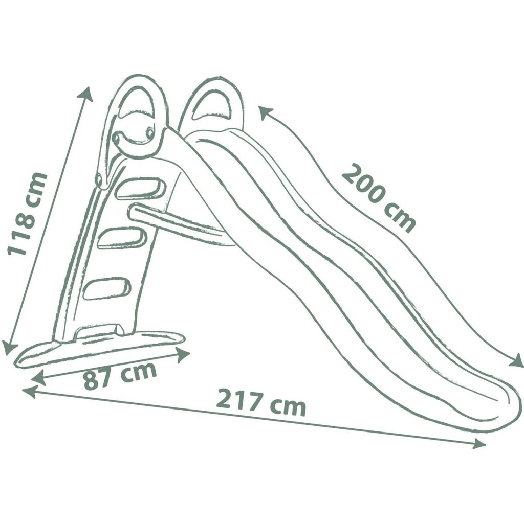 Dvojitá zvlněná skluzavka s délkou skluzavky: 2 m. Stabilita a bezpečnost jsou zajištěny díky extra široké základně a vyfukovanému žebříku s ergonomickými držadly. Protiskluzové schůdky.Plastové díly jsou ošetřeny anti-UV, což zajišťuje dobrou odolnost a stálost barev v průběhu času. Tento výrobek obsahuje minimálně 84 % recyklovaného materiálu.