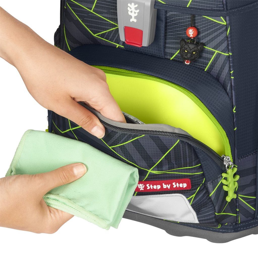 Velmi důležité je zdůraznit, že u výrobků Step by Step se dbá na nejvyšší kvalitu jak použitých materiálů tak i zpracování. Například reflexní plochy, které se nacházejí na každé straně aktovky (to aby byl školák viděn ze všech stran) jsou od značky Oralite (jedné z hlavních výrobců reflexních materiálů používaných na dopravních značkách a ve výrobě automobilů). Přezku u hrudního popruhu nám dodává japonský výrobce zipů a přezek firma YKK. A v neposlední řadě magnetické zavírání dodává značka Fidlock.