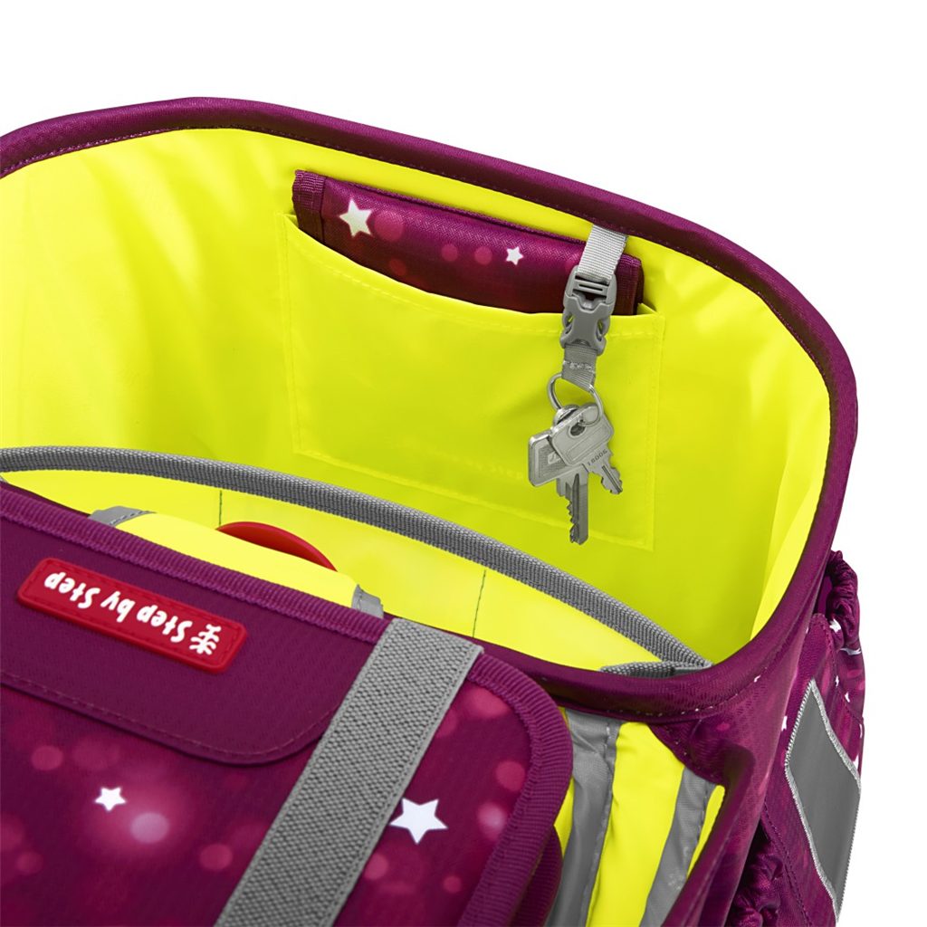 Velmi důležité je zdůraznit, že u výrobků Step by Step se dbá na nejvyšší kvalitu jak použitých materiálů tak i zpracování. Například reflexní plochy, které se nacházejí na každé straně aktovky (to aby byl školák viděn ze všech stran) jsou od značky Oralite (jedné z hlavních výrobců reflexních materiálů používaných na dopravních značkách a ve výrobě automobilů). Přezku u hrudního popruhu nám dodává japonský výrobce zipů a přezek firma YKK. A v neposlední řadě magnetické zavírání dodává značka Fidlock.