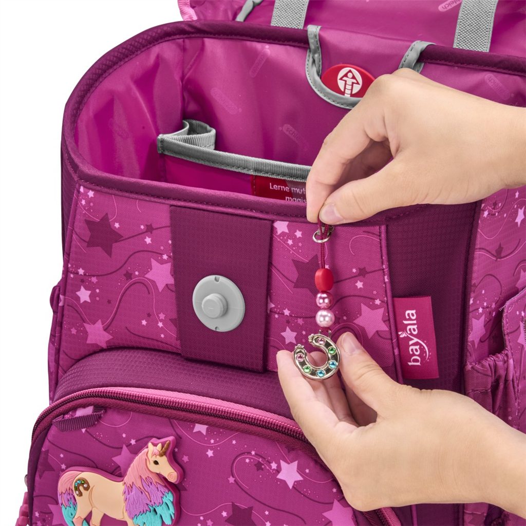 Vyměnitelné obrázky MAGIC MAGS lze z aktovky sejmout a nahradit jinými MAGIC MAGS dle osobního výběru. Díky tomu je každá aktovka jedinečná. Vyměnitelné obrázky MAGIC MAGS lze zakoupit jako samostatný set. Set se skládá ze dvou magnetických obrázků a jednoho přívěšku. Pro neutrální design můžete MAGIS MAGS z aktovky odstranit, aniž by na aktovce zůstaly stopy po lepidle nebo suchém zipu.