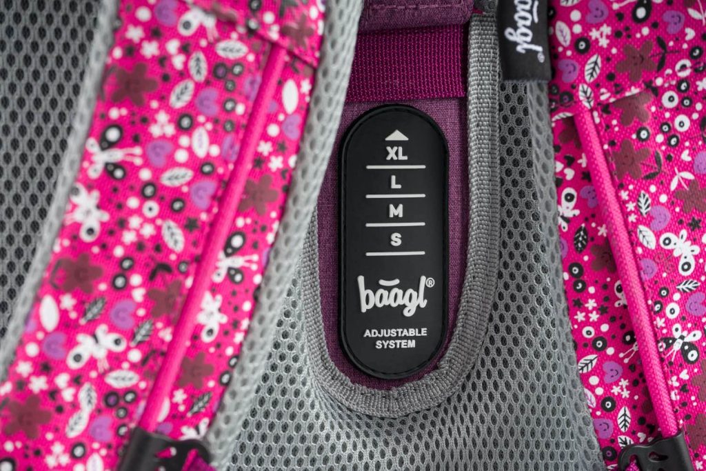 • Posuvný zádový systém BAAGL ADJUSTABLE SYSTEM umožňuje nastavení optimální polohy popruhů vzhledem k výšce dítěte.