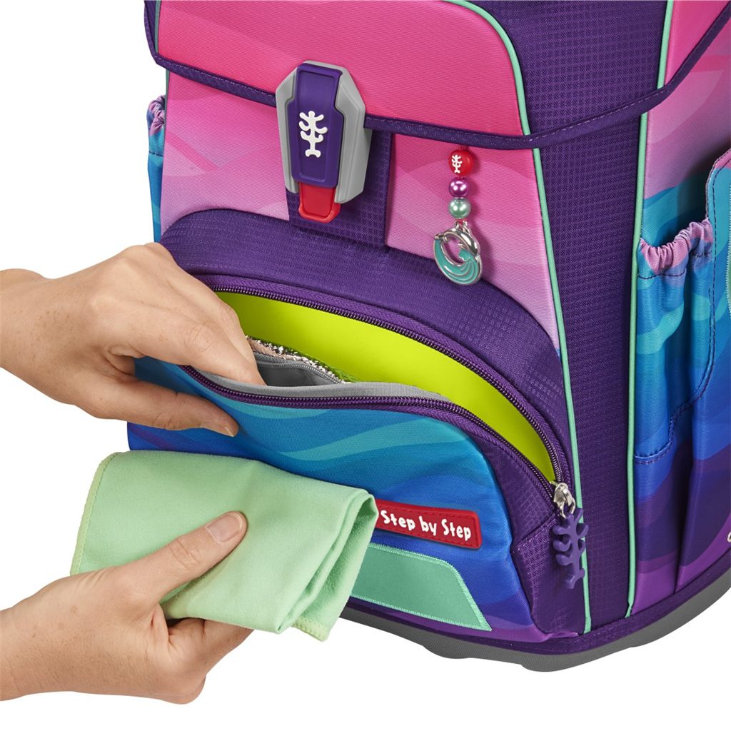 Velmi důležité je zdůraznit, že u výrobků Step by Step se dbá na nejvyšší kvalitu jak použitých materiálů tak i zpracování. Například reflexní plochy, které se nacházejí na každé straně aktovky (to aby byl školák viděn ze všech stran) jsou od značky Oralite (jedné z hlavních výrobců reflexních materiálů používaných na dopravních značkách a ve výrobě automobilů). Přezku u hrudního popruhu nám dodává japonský výrobce zipů a přezek firma YKK. A v neposlední řadě magnetické zavírání dodává značka Fidlock.