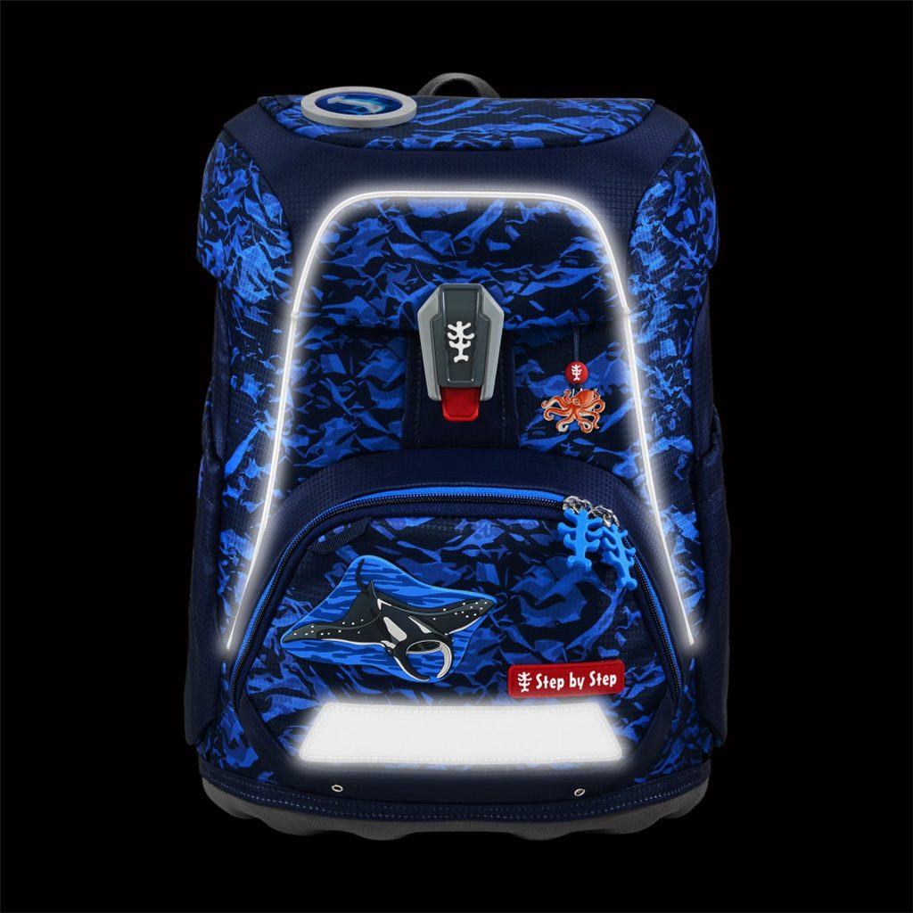 Velmi důležité je zdůraznit, že u výrobků Step by Step se dbá na nejvyšší kvalitu jak použitých materiálů tak i zpracování. Například reflexní plochy, které se nacházejí na každé straně aktovky (to aby byl školák viděn ze všech stran) jsou od značky Oralite (jedné z hlavních výrobců reflexních materiálů používaných na dopravních značkách a ve výrobě automobilů). Přezku u hrudního popruhu nám dodává japonský výrobce zipů a přezek firma YKK. A v neposlední řadě magnetické zavírání dodává značka Fidlock.