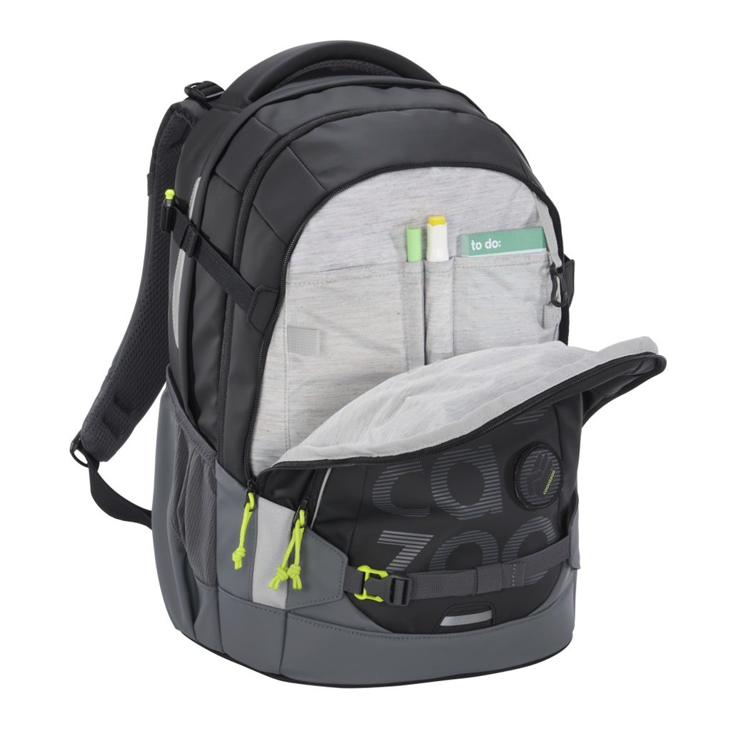 Školní batoh Coocazoo se vyznačuje vysokým komfortem nošení díky prodyšným zádům z EVA materiálu pro optimální cirkulaci vzduchu a vysokou kvalitou zpracování. Výrobce rovněž klade velký důraz na bezpečnostní prvky, které jsou pro teenagera nenápadné, ale pro automobil v šeru a ve tmě přehlédnutelné. Batohy Coocazoo žijí stylem našich teenagerů. Batoh může být stejně dobře školním batohem se zdravými zády jako i cool batohem na skateboard nebo i na výlet do přírody.