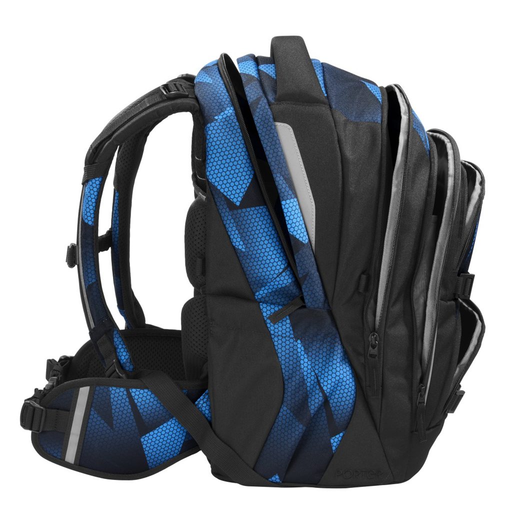 - hlavní kapsa s přihrádkou na knihy a odnímatelnou přepážkou, velká kapsa, kapsa s organizérem a dvě malé přední kapsy např. pro svačinovou krabičku a drobné osobní věci