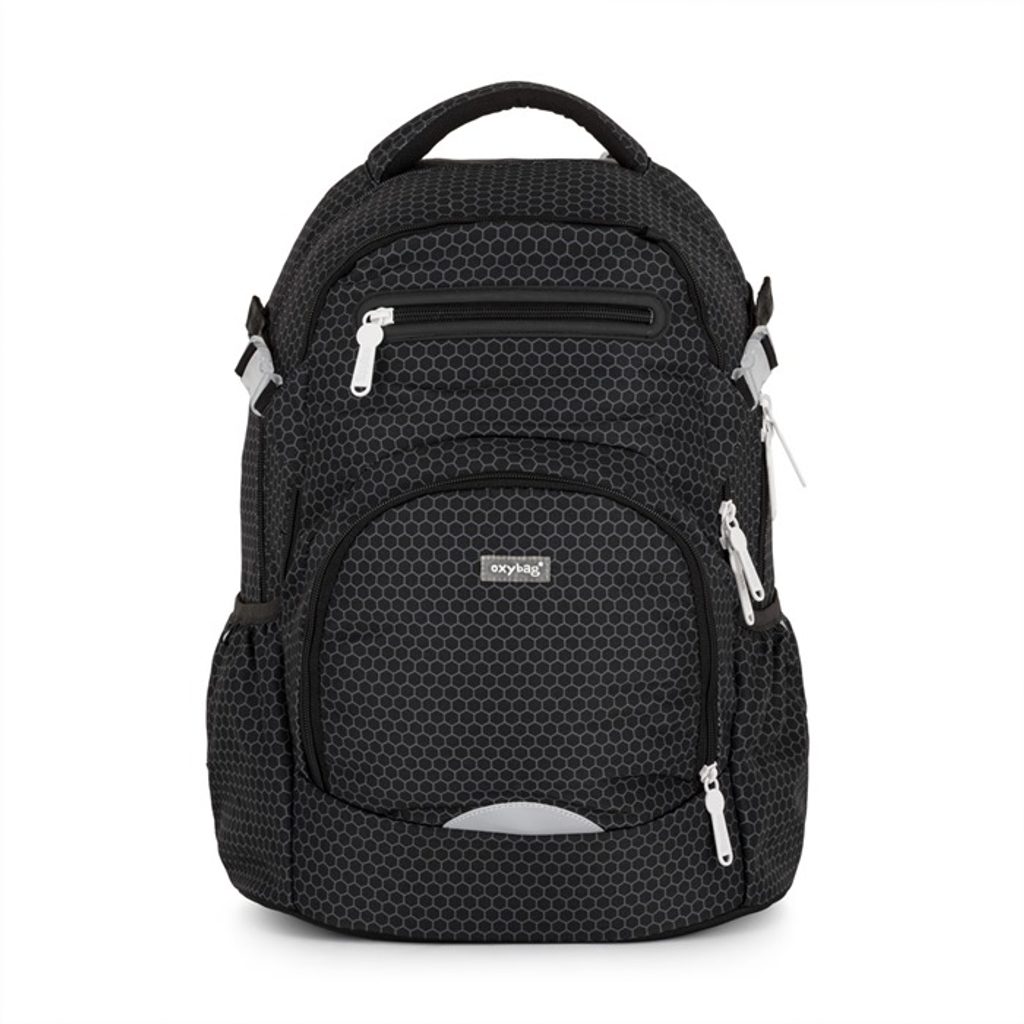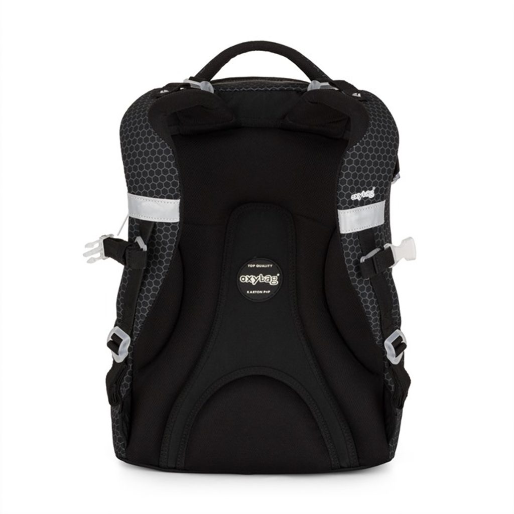 Školní batoh z řady OXY Ombre je ideální pro školáky od 3. třídy. Anatomicky tvarovaný zádový panel, polstrované ramenní popruhy a nastavitelný hrudní popruh zajistí záda jako v bavlnce každému školákovi. Pevné dno zabraňuje převrhnutí samostatně stojícího batohu. Batoh disponuje dvěma prostornými kapsami na všechny potřebné školní pomůcky. V bočních postranních kapsách na gumu je prostor pro láhev na pití, která je snadno dostupná pro doplnění pitného režimu každého školáka. Do přední kapsičky se snadno schová menší svačina. Nechybí řada reflexních prvků. Batoh je vhodný pro děti vysoké od 136 cm. Délka zádového panelu je 43 cm, objem činí 28 l, hmotnost batohu je 960 g a jeho nosnost je 8 kg.