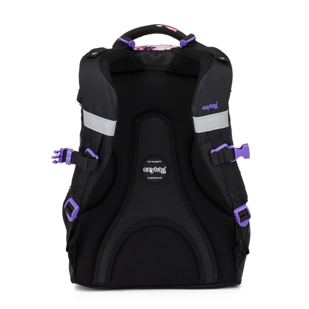 Školní batoh z řady OXY Ombre je ideální pro školáky od 3. třídy. Anatomicky tvarovaný zádový panel, polstrované ramenní popruhy a nastavitelný hrudní popruh zajistí záda jako v bavlnce každému školákovi. Pevné dno zabraňuje převrhnutí samostatně stojícího batohu. Batoh disponuje dvěma prostornými kapsami na všechny potřebné školní pomůcky. V bočních postranních kapsách na gumu je prostor pro láhev na pití, která je snadno dostupná pro doplnění pitného režimu každého školáka. Do přední kapsičky se snadno schová menší svačina. Nechybí řada reflexních prvků. Batoh je vhodný pro děti vysoké od 136 cm. Délka zádového panelu je 43 cm, objem činí 28 l, hmotnost batohu je 960 g a jeho nosnost je 8 kg.