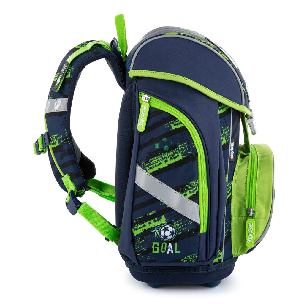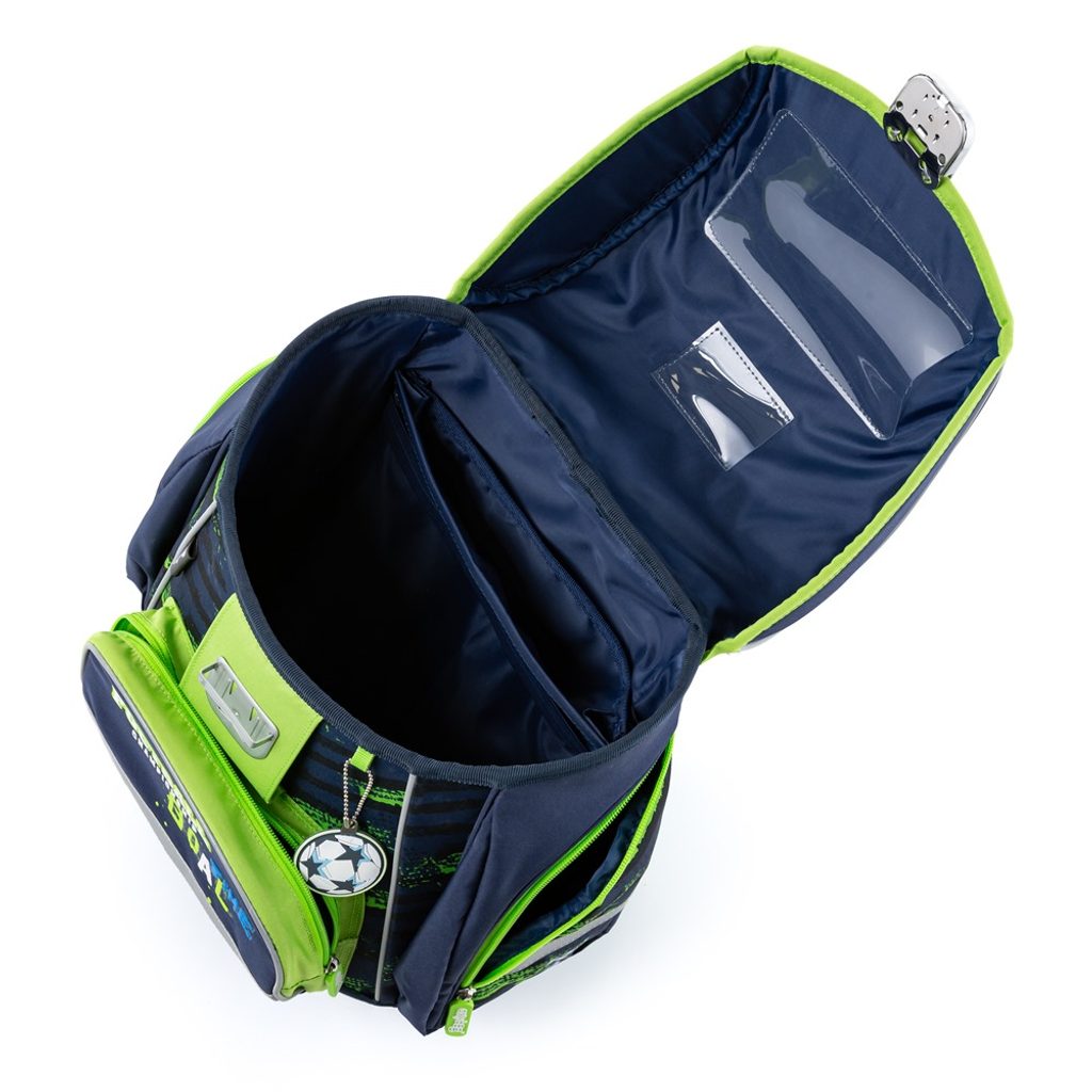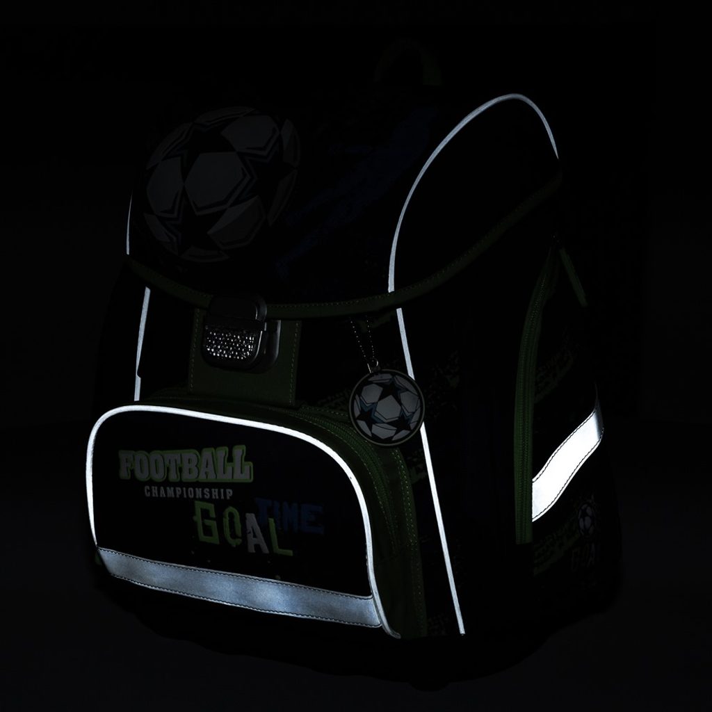 Školní aktovka z řady Premium s motivem fotbalu je anatomicky tvarovaná a zajišťuje tak správné usazení na zádech. Vyztužená záda a vnitřní výztuha udržují stálý tvar batohu. Polstrování je z příjemného prodyšného materiálu, široké měkčené popruhy jsou navrženy tak, aby dokonale přilnuly a rovnoměrně zatížily ramena dítěte. Aktovka se skládá z jedné prostorné komory, kam se pohodlně vejdou všechny školní pomůcky pro děti v 1. a ve 2. třídě. Dno batohu je z pevného materiálu, chrání tím obsah před převržením a vysypáním. Zapínání je na bezpečnostní přezku. Přední kapsička je určena na svačinu, nechybí řada reflexních prvků, díky kterým je aktovka viditelnější.