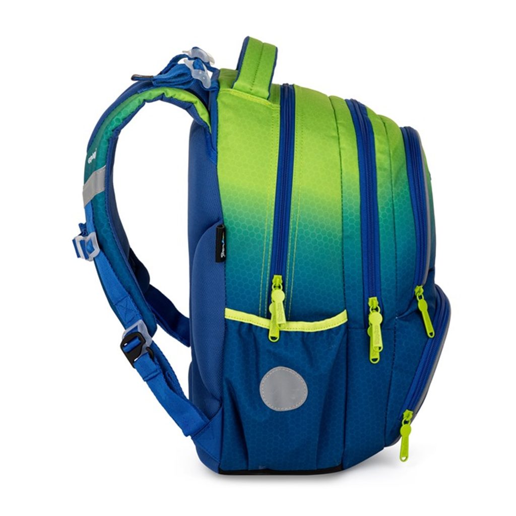 Výhodný set batohu, etue JUMBO a sáčku na cvičky. Školní batoh OXY NEXT je ideální pro děti od 2. - 4. třídy ZŠ. Disponuje anatomicky tvarovanými zády, polstrovanými ramenními popruhy a hrudním popruhem. Po stranách najdete dvě větší kapsy. Ať už vaše dítě bude v batohu nosit cokoliv, nic se mu v něm neztratí, batoh totiž nabízí velkorysé množství nejrůznějších kapes, velkých nebo i malých. Hledání klíčů nehrozí, batoh obsahuje i držák na klíče nebo školní čip. Lehký, přitom dostatečně velký pro všechny věci, které chce mít každý školák po ruce. Mysleli jsme také na bezpečnost vašich dětí, batoh je vybaven velkým množstvím reflexních prvků. Dno batohu je opatřeno zpevněným nepromokavým materiálem. Vhodné pro děti s výškou od 128 cm. Délka zádového panelu je 42 cm, objem činí 21 l, hmotnost batohu je 870 g a jeho nosnost je 8 kg. Rozměr: 310*420*160 mm, Hmotnost: 1,130 kg