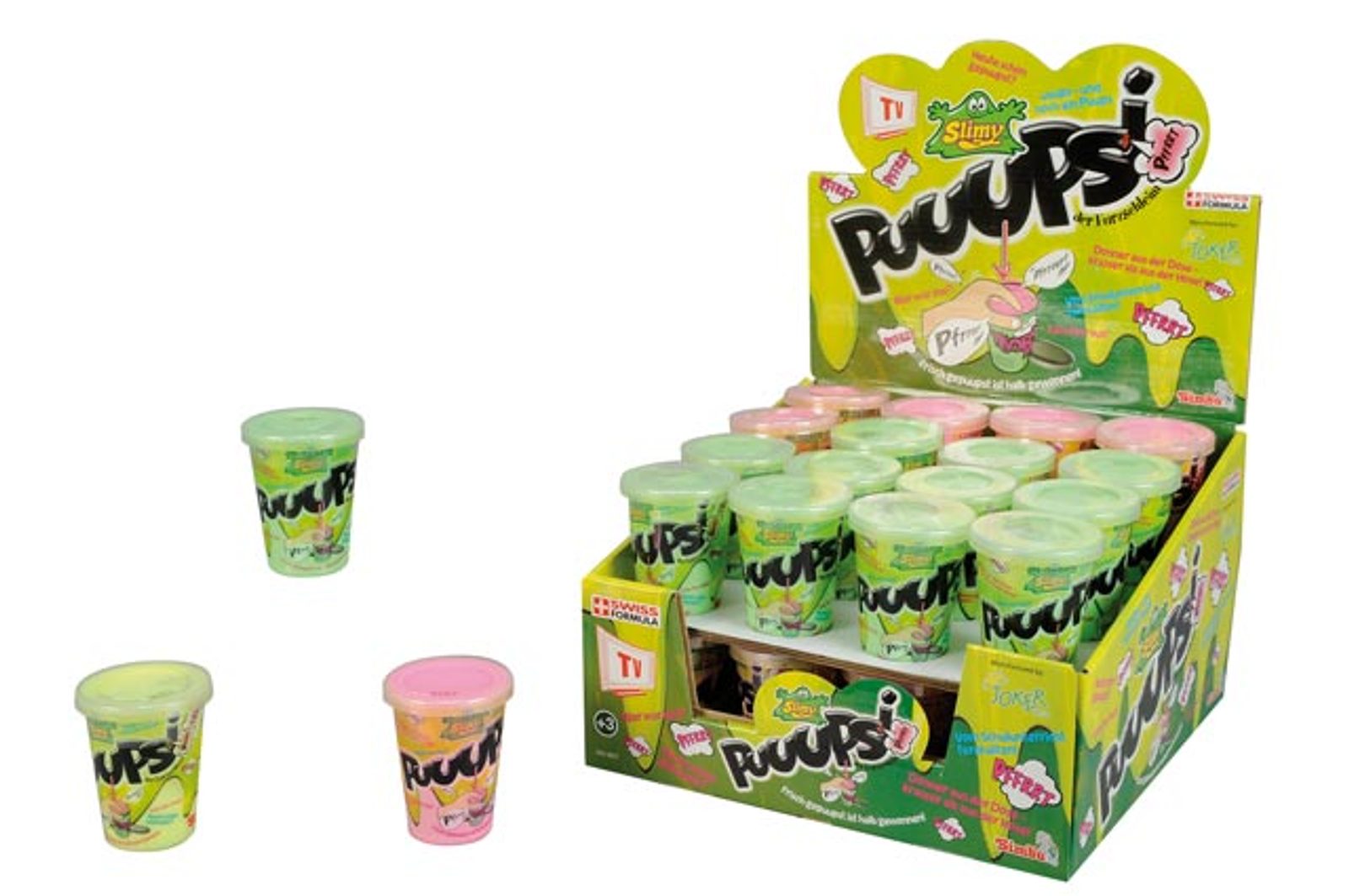 Slimy prdící sliz v kelímku, 3 druhy, displej 32 ks