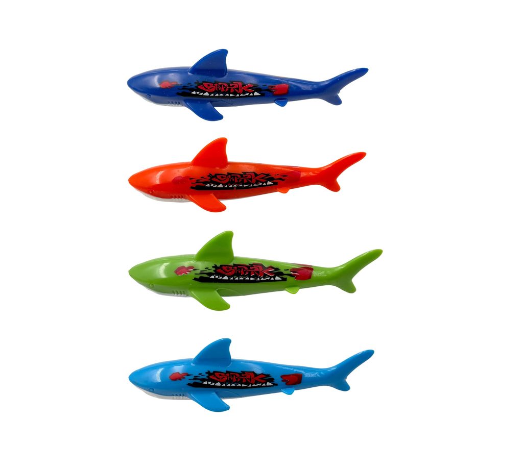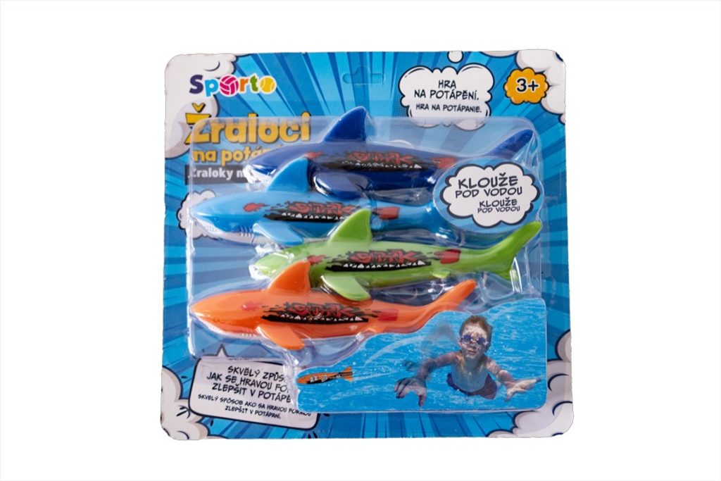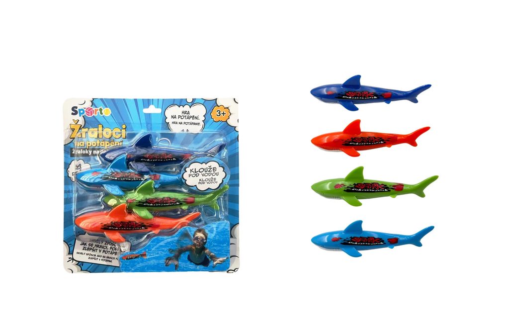4 barevní žraloci, kteří se po vhození do vody potopí a ty je musíš vylovit.