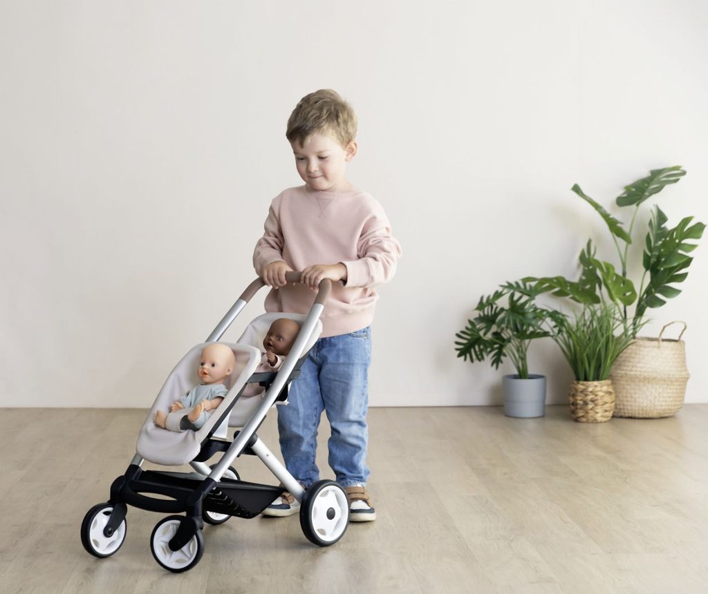 Dvojitý kočárek Smoby s odnímatelnými sedadly a tichými kolečky. Moderní sportovní kočárek pro panenky Smoby twin v nezaměnitelném designu Quinny. Dobře navržený kočárek pro panenky má skvělé…
