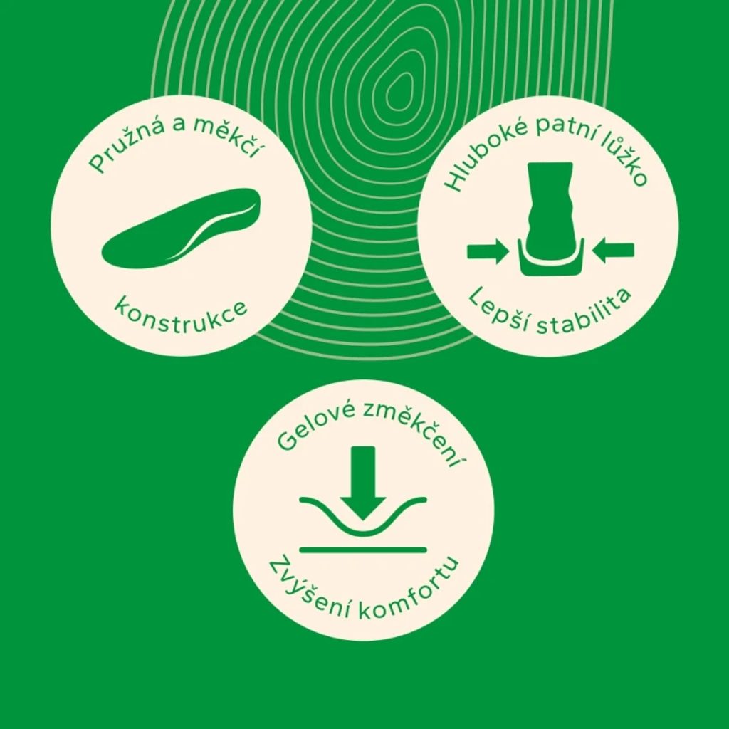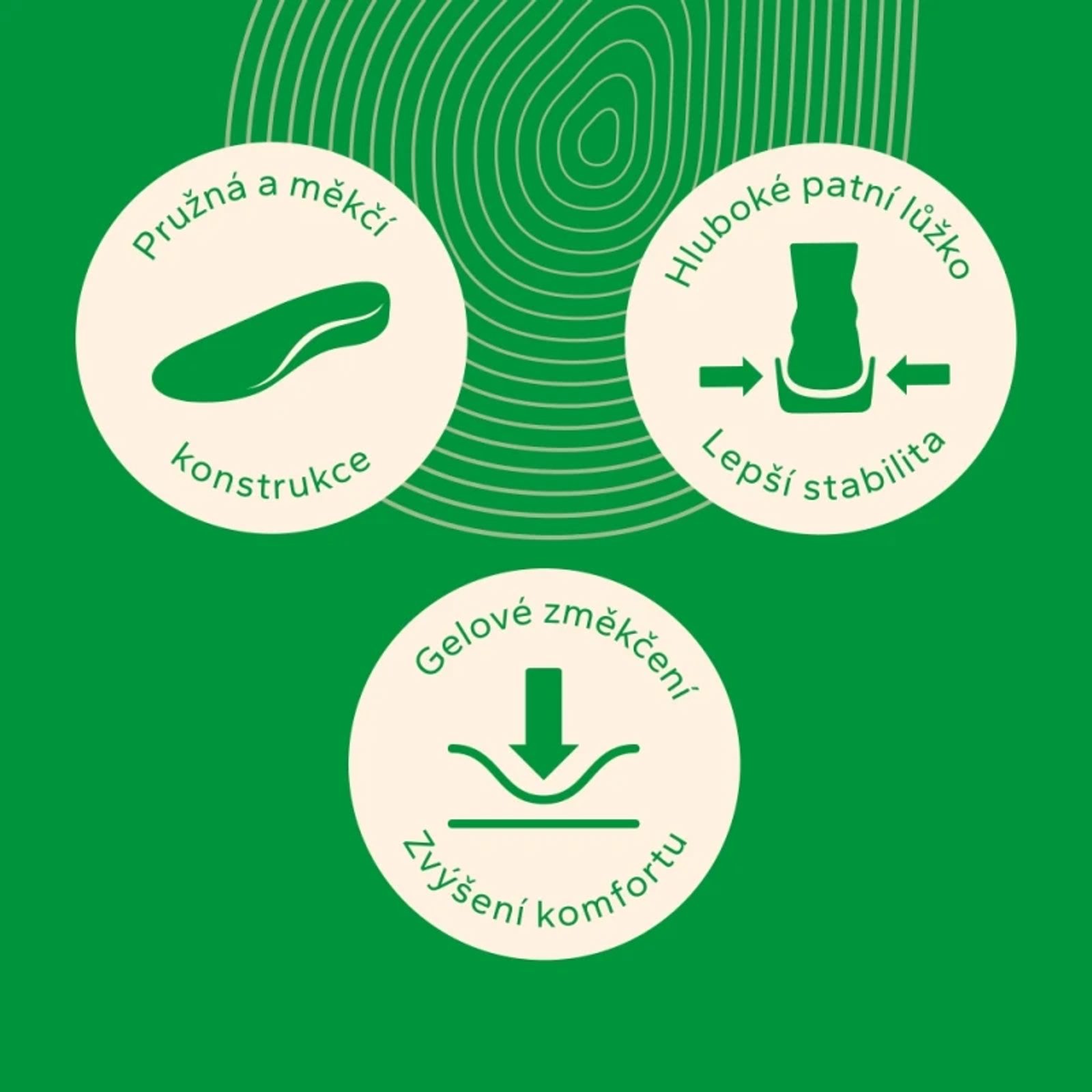 **3D Sport Gel** jsou vložky do bot, které jsou vhodné nejen při potížích, ale i pro zdravou nohu jako prevence vzniku deformit. Vložky kromě zvýšení pohodlí ovlivňují správný biomechanický pohyb nohou a řetězovitě i celého těla. Správný pohyb nohou zatěžuje jenom svaly pro tento pohyb určené a tím se zvláště při aktivní činnosti snižuje únava nohou. Vyklenutí vložek brání zborcení podélné klenby a zvýšený okraj v patní části zlepšuje stabilitu nohy. Pod patou a pod klouby prstů jsou ve vložce gelové polštářky, které tlumí nárazy a spolu s větším pohodlím tak chrání i kostru nohy. Vložky jsou určené pro sportovní a intenzivní aktivity, proto jsou vyrobené z odolného zátěžového materiálu, který má dlouhou životnost. Vložky je možné omývat vlažnou vodou s mýdlem.