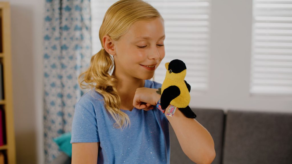 Ptáčka si můžeš připnout na ruku a užít si s ním spoustu zábavy. Opakuje, zpívá ptáčí písničku a mává křídly. Ptáčka si můžeš připnout na ruku a užít si s ním spoustu zábavy. Opakuje, zpívá ptáčí písničku a mává křídly.