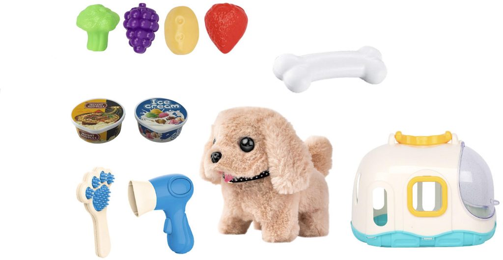 Příslušenství pro péči: V balení najdete hřebínek a fén, abyste se mohli o štěňátko starat a upravovat ho.