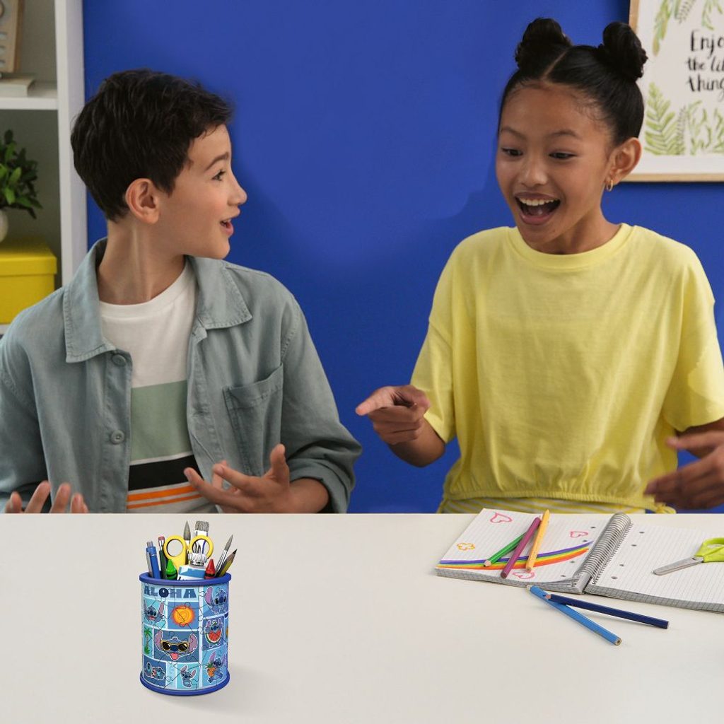 Postavte si vlastní stojan na tužky z plastových dílků puzzle. Stojan s motivem Stitch od Disney se hodí jako doplněk do každého pokoje.