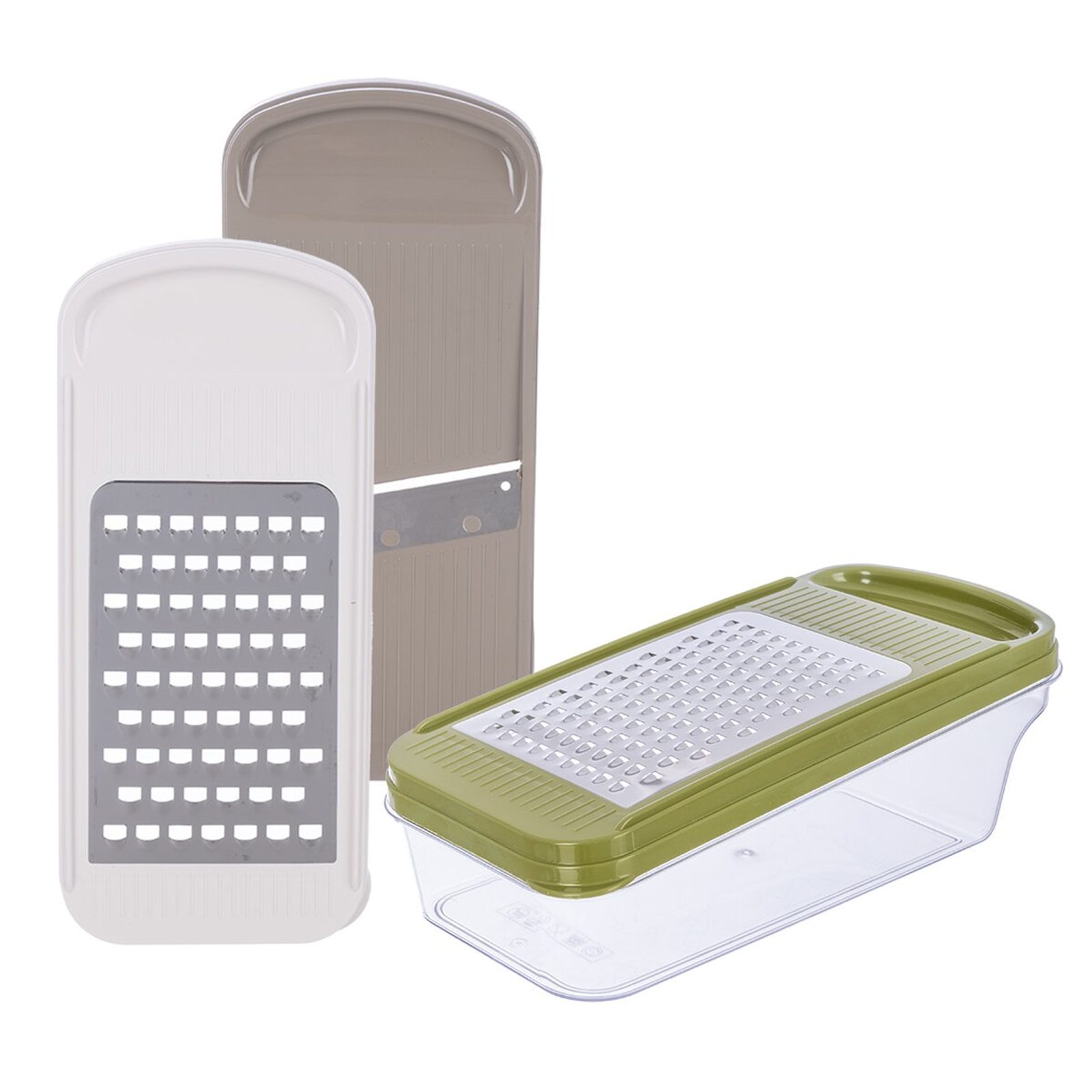 Struhadlo se zásobníkem je praktickým pomocníkem do každé kuchyně, který usnadňuje přípravu potravin. Disponuje velkou strouhací plochou, díky níž je práce rychlá a efektivní. Součástí jsou tři vyměnitelné nástavce umožňující různé druhy strouhání i krájení na plátky, takže jej lze využít pro širokou škálu surovin. Nastrouhané potraviny se shromažďují přímo v zásobníku, který lze jednoduše uzavřít víkem a uložit například do lednice, aniž by bylo nutné obsah přesypávat. Ergonomické a snadné uchycení zajišťuje pohodlnou a bezpečnou manipulaci během krájení, což oceníte při každodenním používání. Výrobek je BPA-free. Materiál: plast PPR (víčko) + plast PS (zásobník) + plast ABS (nástavce) + nerezová ocel. Rozměry: 24x11x10 cm. Lze mýt v myčce.