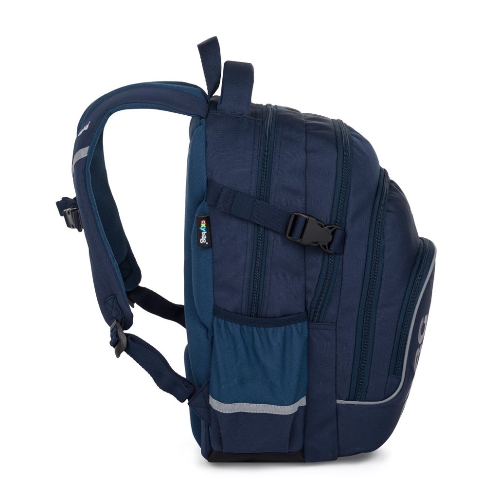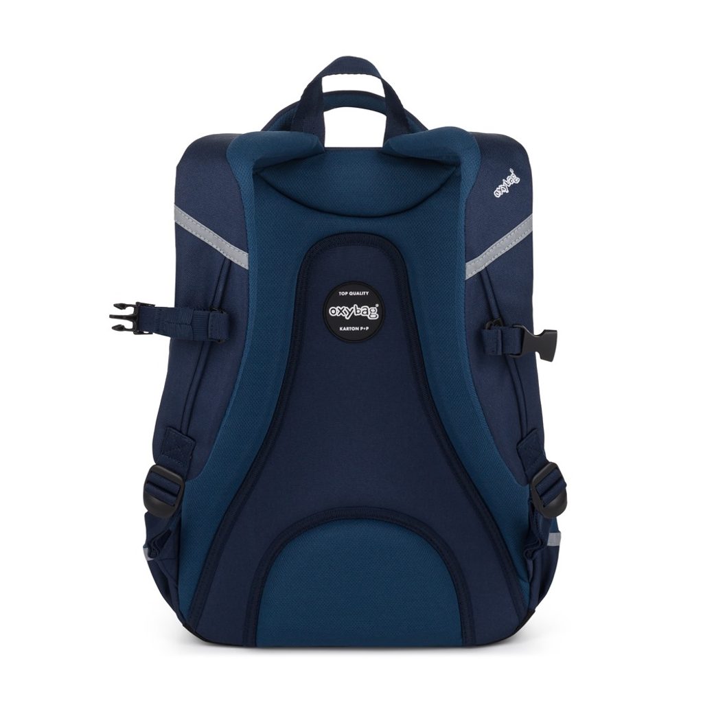 Batoh OXY Scooler je ideální volbou pro školáky od 3. třídy, kteří potřebují dostatek prostoru na všechno důležité. Tříkomorový batoh nabízí spoustu místa na učebnice, sešity i svačinu, nechybí organizér na drobnosti, vnitřní kapsa a přihrádka na notebook. Boční kapsa je perfektní na láhev s pitím, zatímco držák na klíče nebo čip ušetří jejich zdlouhavé hledání. Díky anatomicky tvarovaným prodyšným zádům, nastavitelným ramenním popruhům a hrudnímu popruhu sedí batoh pohodlně na zádech i při delším nošení. Zpevněné nepromokavé dno chrání obsah před vlhkostí, reflexní prvky zajišťují větší bezpečnost na cestě do školy i zpět. Spolehlivý parťák pro školní dny i volnočasové aktivity. Délka zádového panelu je 43 cm, objem činí 28 l, hmotnost batohu je 780 g a jeho nosnost je 8 kg. Rozměr: 320*430*200 mm, Hmotnost: 780 g